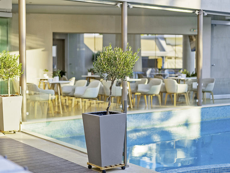 Die öffentlichen Bereiche sind kompakt und funktional organisiert: Außenpool mit Sonnenterrasse, Liegen und Schirmen, dazu Gartenflächen und Sitzbereiche im Freien. Die 24-Stunden-Rezeption, Concierge und Tour-Desk bilden das Servicezentrum. WLAN ist verfügbar, ebenso Internetzugang, und für Anreisen per Auto stehen kostenfreie Parkplätze sowie eine Ladestation für E-Fahrzeuge bereit.