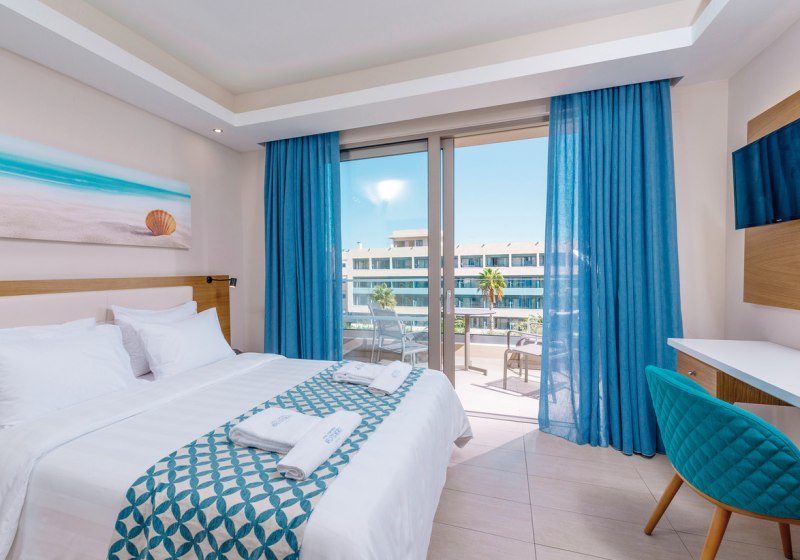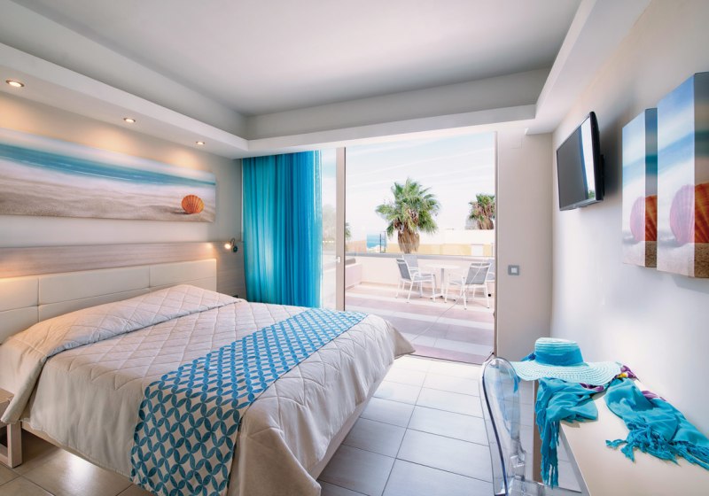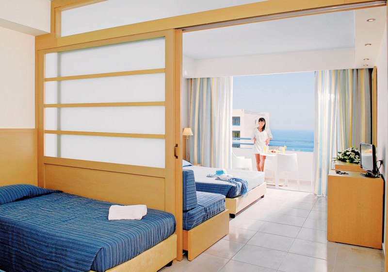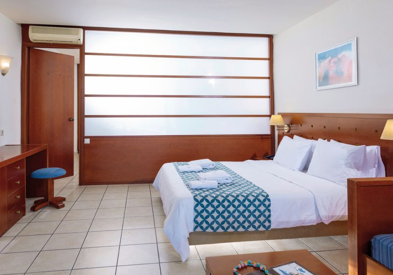 Ihr wählt zwischen Zimmern mit Balkon oder Terrasse, teils mit Meerblick. Standardausstattung umfasst Bad oder Dusche/WC, Föhn, Sat-TV, WLAN, Kühlschrank, Klimaanlage und Safe gegen Gebühr. Superior-Zimmer verfeinern den Komfort mit Kaffee-/Teezubereiter, 32-Zoll-Sat-TV, Bademantel und Slipper.