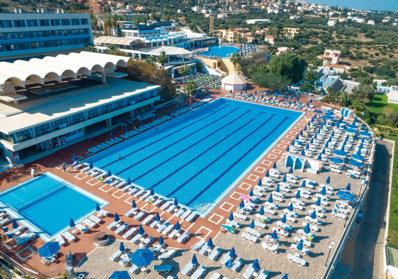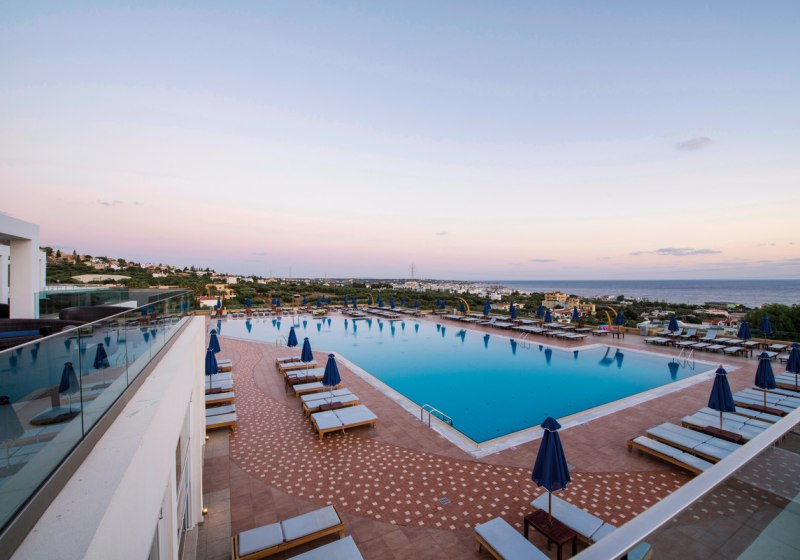 Im Royal & Imperial Belvedere Hotels wohnt Ihr oberhalb der Bucht von Chersonissos in Hanglage mit weitem Blick aufs Meer. Die weitläufige Anlage mit 3 Außenpools, Kinderpool samt kleinem Wasserpark und sonnigen Terrassen wirkt lebendig, ohne zu drängen. Familien, Paare und Abenteurer und Aktivurlauber finden hier viele Anknüpfungspunkte – von Miniclub bis Fitnessraum.