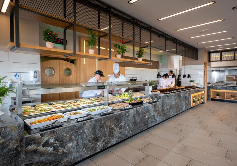 - Open-Air Genuss: Zwei Freiluft-Restaurants mit Buffet und Live-Kochen.