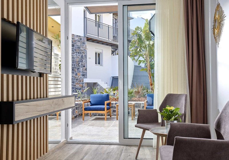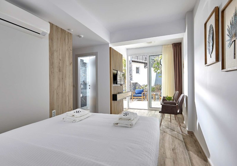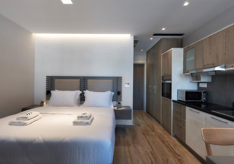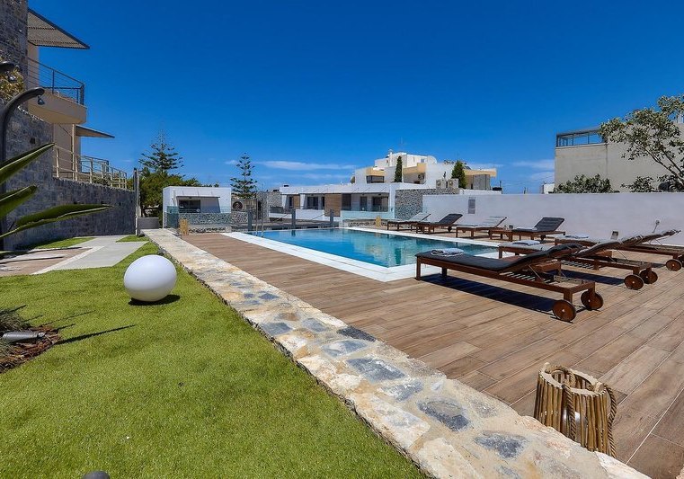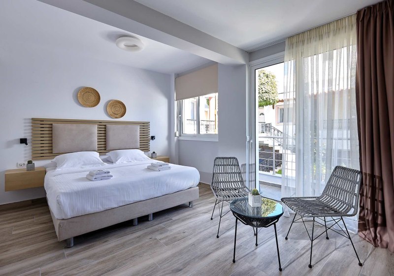 Die Nähe zum Sand-/Kiesstrand von Agia Pelagia verleiht Eurem Aufenthalt einen maritimen Rhythmus: morgens zum Wasser, nachmittags auf die Sonnenterrasse, zwischendurch an die Pool-/Snackbar. Mit nur 33 Wohneinheiten wirkt alles übersichtlich und persönlich. Rezeption, WLAN und praktische Services unterstützen Euch, ohne den dezenten Charakter zu stören.