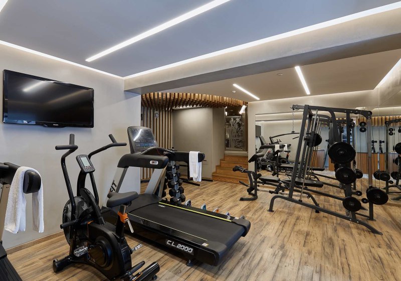 - Fitnessraum: Kurze Workouts als Ausgleich zwischen Pool und Strand.
