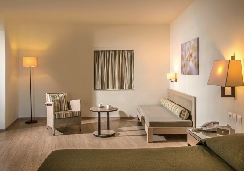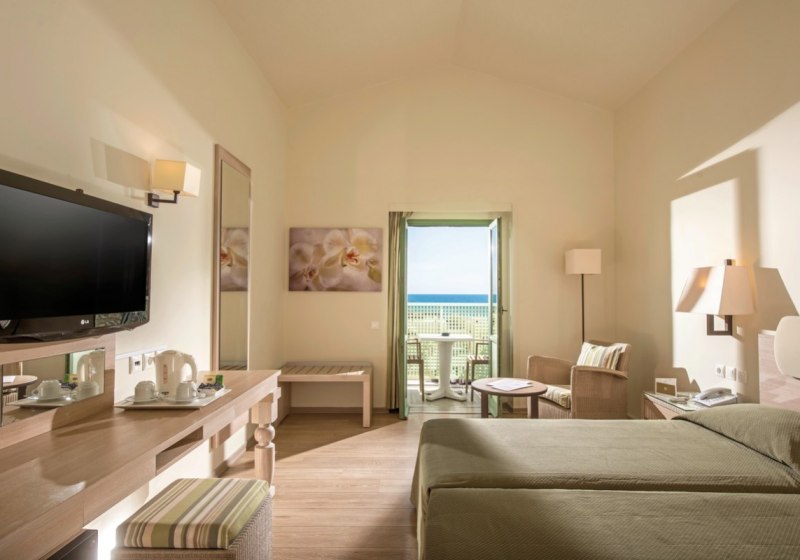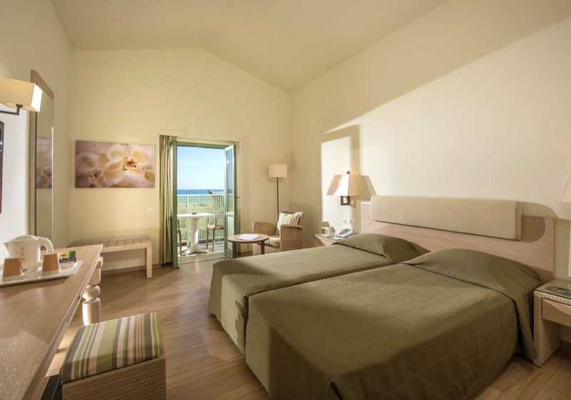 • Klimaanlage • Balkon (je nach Zimmerkategorie) • Haartrockner • Sitzecke (je nach Zimmerkategorie) • Safe • Meerblick (je nach Zimmerkategorie: seitlich) • Schlafsofa • Kaffee-/Teezubereiter • Fernseher • rollstuhlgerechte Zimmer (auf Anfrage) • WiFi (kostenfrei) • Bergblick • Kühlschrank • Terrasse