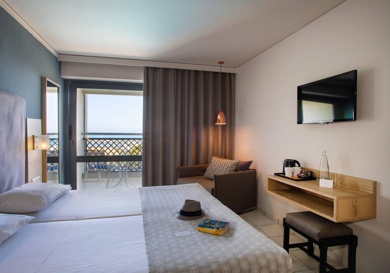 Zur Wahl stehen Superior-Zimmer mit Walk-in-Dusche und erweiterten Annehmlichkeiten, Familienzimmer mit Etagenbett sowie Bungalows mit zwei Einzelbetten für Kinder. Schlafsofa und verschiedene Ausblicke – Garten- oder Meerblick – geben zusätzliche Optionen. Die Wohneinheiten sind übersichtlich geschnitten (ca. 21 m², je nach Typ variierend) und auf praktische Abläufe ausgerichtet. Highlight: Durchdachte Familienvarianten mit klaren Schlafzonen und Blickoptionen.