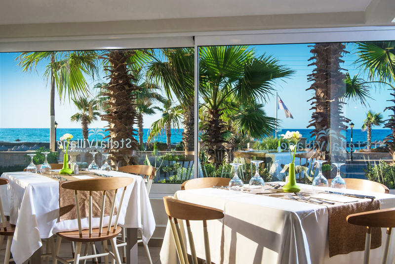 Das Stella Village bietet All Inclusive Verpflegung an und hat insgesamt zwei Restaurants. Es gibt ein internationales Buffetrestaurant sowie ein Gourmetrestaurant, welches italienische Küche serviert. Beide Restaurants bieten Showcooking an. Ausgewählte lokale alkoholische und nichtalkoholische Getränke sind von 10:00 bis 23:00 Uhr inklusive. Zusätzlich gibt es auch zwei Bars, eine davon ist eine Poolbar.Ausstattung