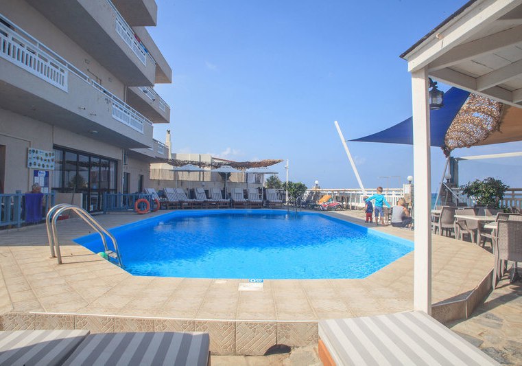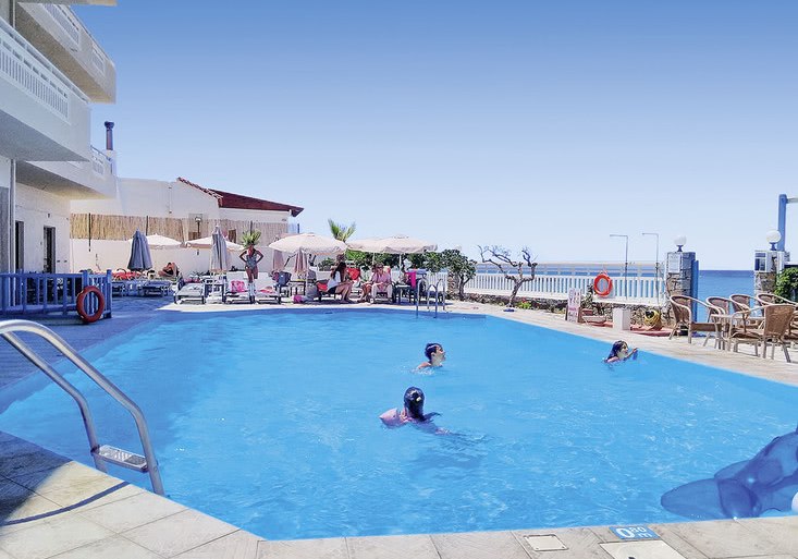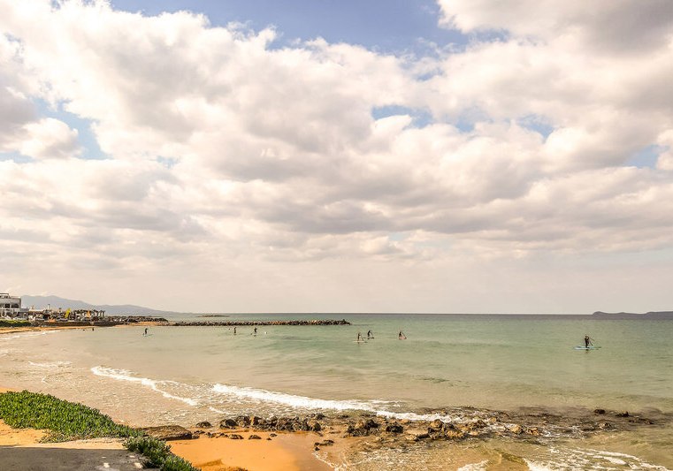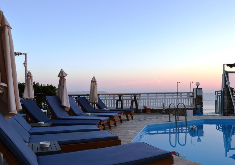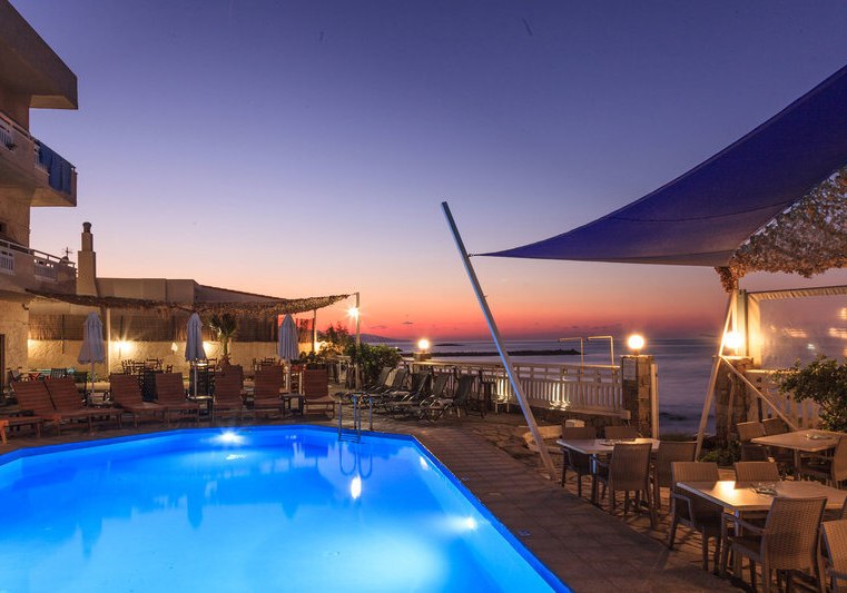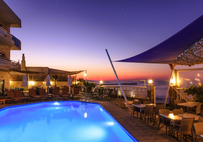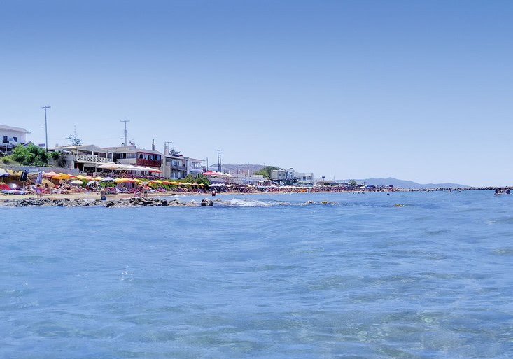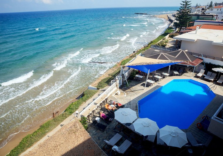 Die Lage spielt ihre Trümpfe direkt am Sandstrand von Kokkini Hani aus, rund 12 km östlich von Heraklion. Der Flughafen Heraklion liegt etwa 8 km entfernt, die Bushaltestelle befindet sich direkt vor dem Hotel. So erreicht Ihr Ziele schnell, ohne auf Strandnähe zu verzichten.