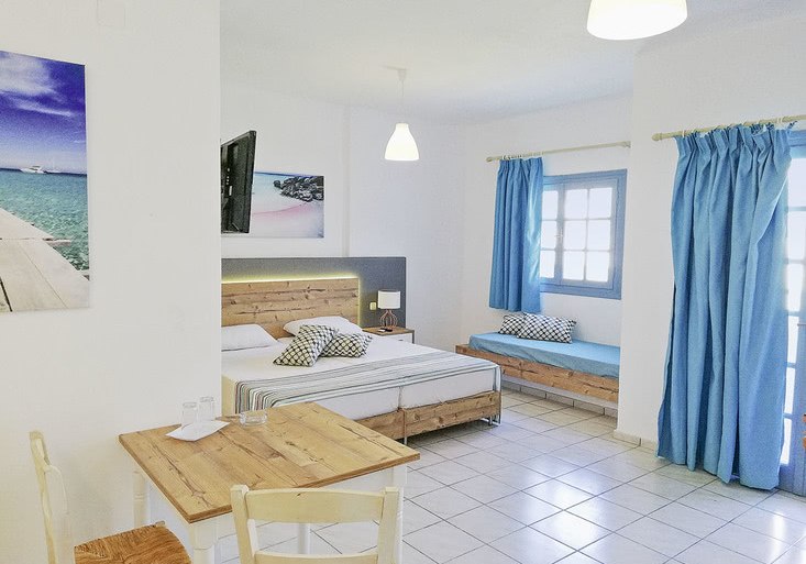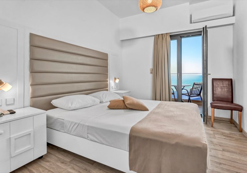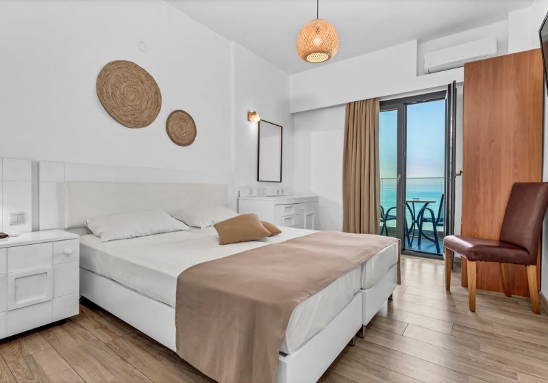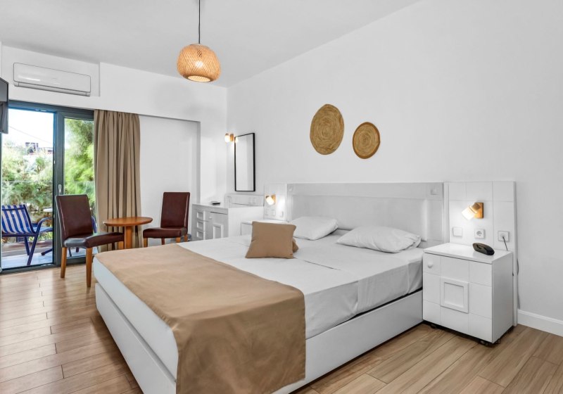 Die Zimmer sind funktional ausgestattet: Dusche/WC, Föhn, Telefon, Sat-TV, WLAN, Klimaanlage, Kühlschrank und Mietsafe. Ein Balkon oder eine Terrasse erweitert den Raum, optional mit Blick aufs Meer. Kaffee- und Teezubereiter sind integriert – praktisch für den ersten Schluck am Morgen.