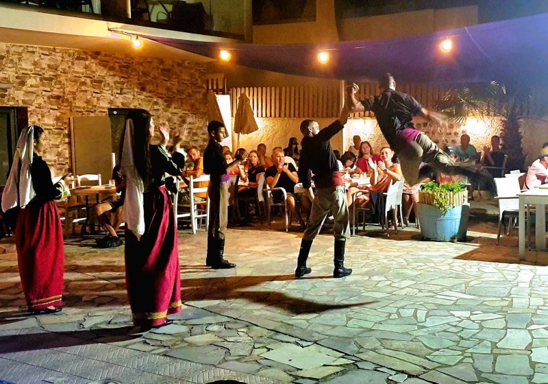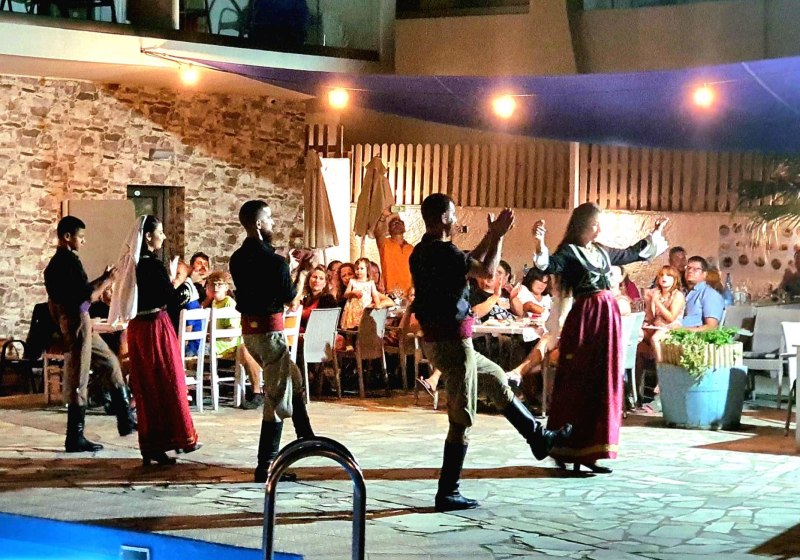 Für Familien ist der Spielplatz praktisch eingebunden. Dazu sorgen Bar und Pool-/Snackbar für lockere Zwischenstopps. Musikmomente rund um die Poolpartys geben dem Abend Farbe, bleiben aber fokussiert. Highlight: Griechischer Abend mit regionalem Flair in kompaktem Rahmen.