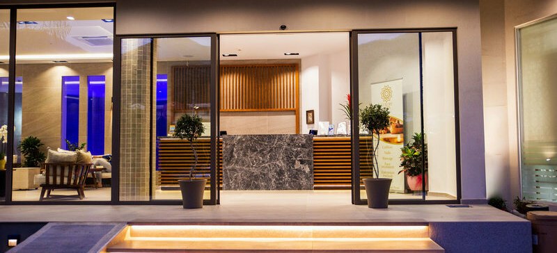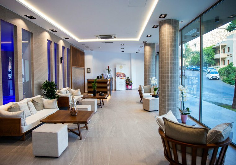 Im Sunset Boutique Hotel & Spa trefft Ihr auf ein Boutique-Haus mit nur 35 Zimmern, zuletzt 2014 renoviert. Die Anlage wirkt kompakt und aufgeräumt: eine klare Lobby, kurze Wege, ruhige Sitzbereiche im Garten und eine Sonnenterrasse am Außenpool mit integriertem Kinderbecken. Ihr wohnt nah am Sandstrand und dennoch zentral, mit Einkauf und Unterhaltung in bequemer Distanz.
