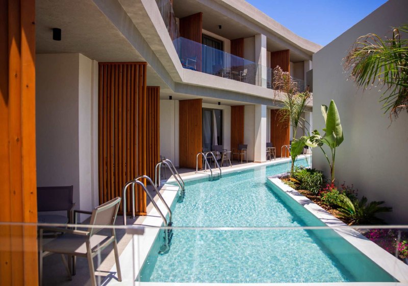 „Für Euch, wenn Ihr eine überschaubare Boutique-Adresse mit Nähe zum Sandstrand, Studios und Appartements mit Kitchenette, Spa-Bereich und zentraler Lage zu Shops und Bars sucht – angenehm ruhig im Haus, lebendiger in der Umgebung.“