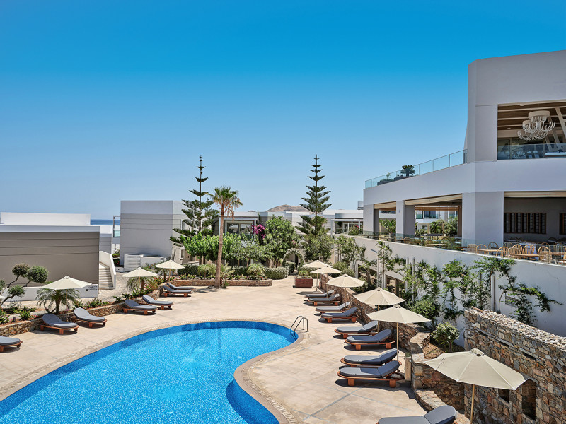 Am Strand warten Liegestühle, Sonnenschirme und Gazebos, dazu Umkleiden und The Beach Bar. Poollandschaften mit Außen- und Hallenbad, Kinderpool und ein Adults-only-Süßwasserpool verteilen die Erholung. Gepflegte Gärten und Terrassen geben dem Ganzen eine ruhige, klare Anmutung mit viel Außenraum.