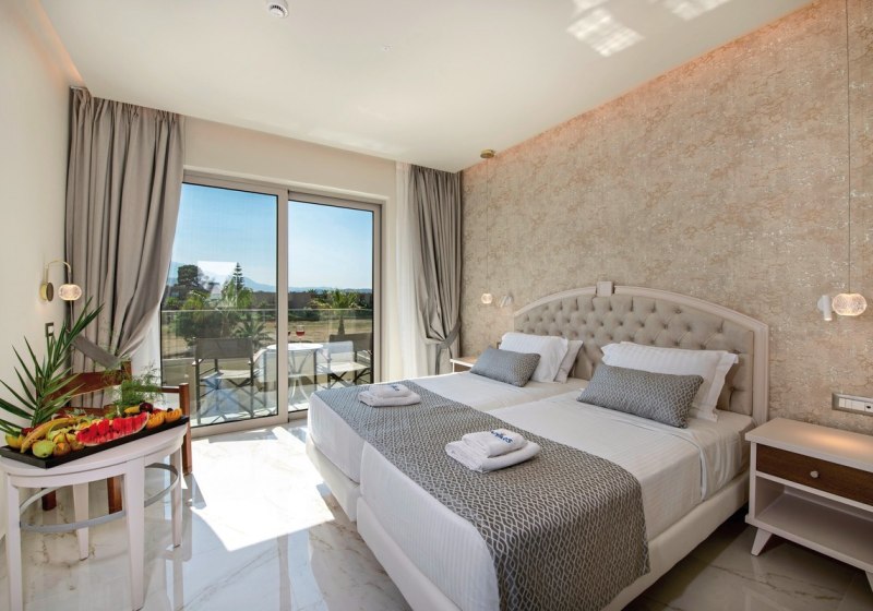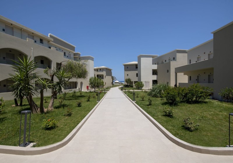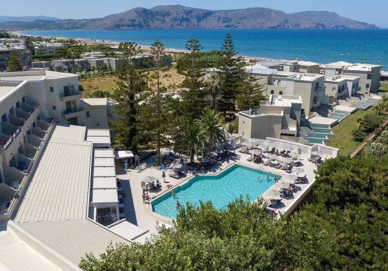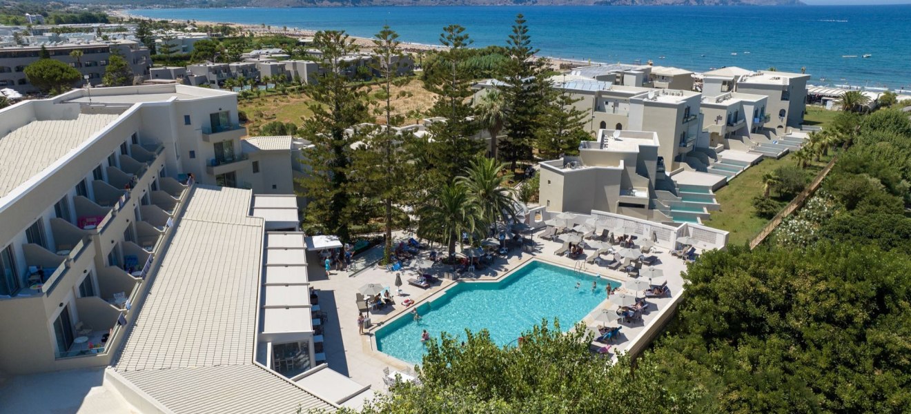 Im Vantaris Luxury Beach Resort wohnt Ihr direkt am Sand-Kiesstrand von Kavros, mit Blick auf das Meer und kurzen Wegen durch eine weitläufig angelegte Resortstruktur aus Haupthaus und zweistöckigen Bungalowgebäuden. Die Atmosphäre wirkt klar und zeitgemäß, mit viel Platz für ruhige Stunden am Pool oder auf der Sonnenterrasse. Highlight: Direkte Strandlage, kurzer Weg vom Zimmer zum Meer.