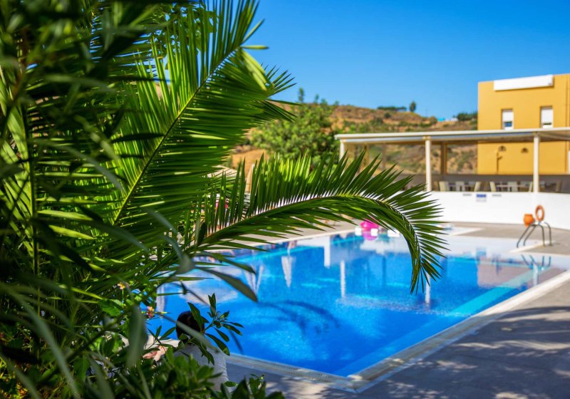 Der Charakter ist entspannt und freundlich, getragen von mehrsprachigem Service und klaren Strukturen. Euch erwarten gemeinschaftliche Bereiche wie Aufenthaltsraum mit Sat-TV, Bar und Poolbar; WLAN nutzt Ihr in den öffentlichen Zonen. Kulinarisch begleitet Euch das hauseigene Restaurant mit Terrasse. Eine Besonderheit: Das Hotel verwendet eigenes Olivenöl aus eigenen Olivenbäumen.