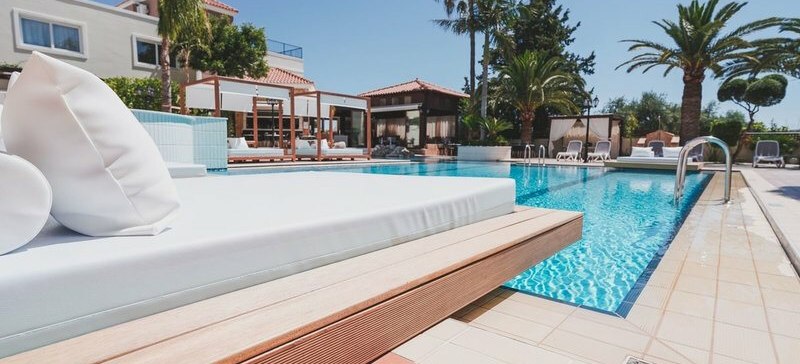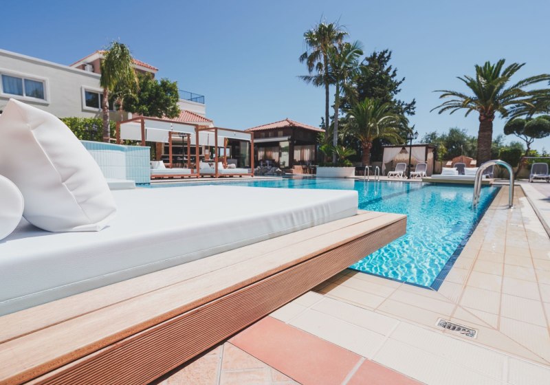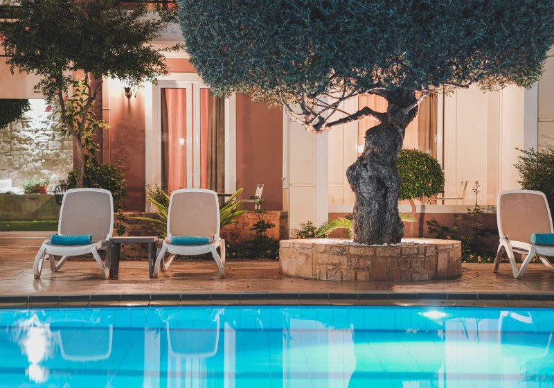 Zeus Village richtet sich an Erwachsene ab 18 Jahren, die eine renovierte, ruhige Basis nahe dem Strand suchen. Kurze Wege, Pool und Sonnenterrasse, ein fokussiertes Wellnessangebot und eine stimmungsvolle Bar-Szenerie prägen den Aufenthalt in Kato Daratso bei Chania.