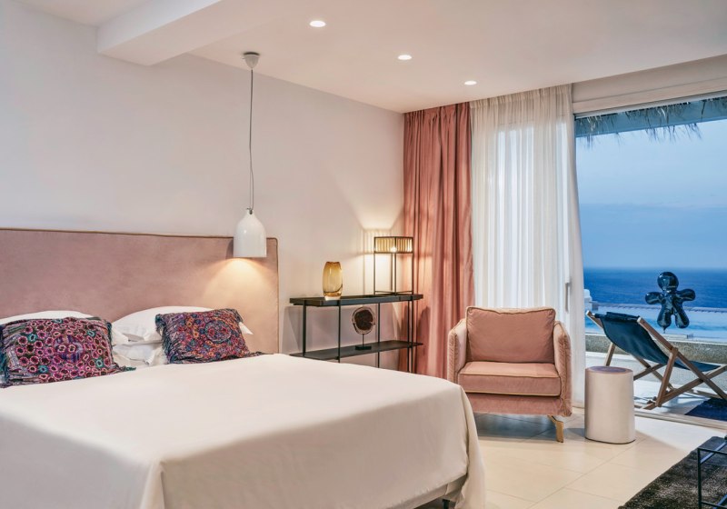 Aus 59 Zimmern, Suiten und Villen wählt Ihr nach Platzbedarf und Privatsphäre. Allen gemeinsam sind Balkon oder Terrasse mit Meerblick, Klimaanlage, Safe und Minibar. Im Bad erwarten Euch Regendusche oder Badewanne, Bademäntel, Föhn und Vergrößerungsspiegel. Unterhaltung bietet Satelliten‑TV sowie eine iPhone/iPod‑Dockingstation, dazu kostenfreies WLAN.