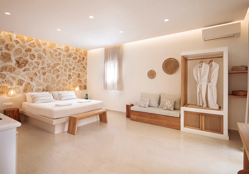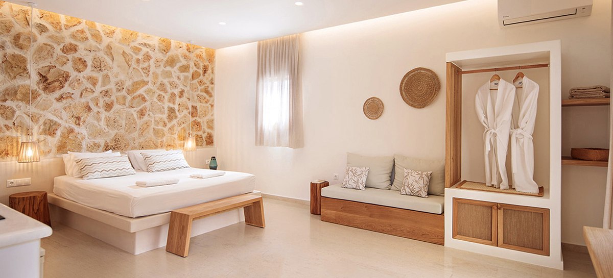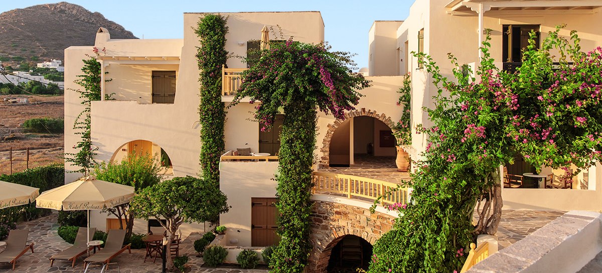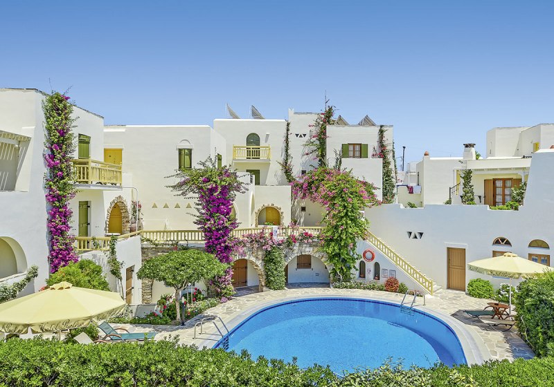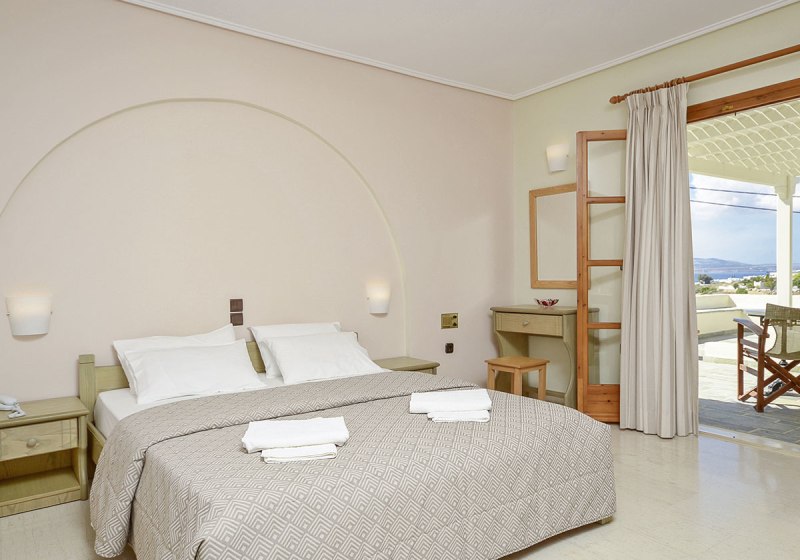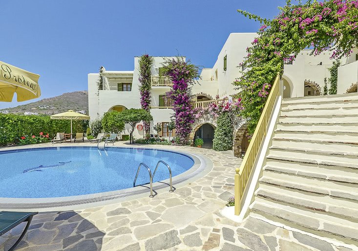 Proteas verbindet Kykladen-Architektur mit einer ruhigen Lage nahe dem Sandstrand Agios Prokopios. Mit nur 31 Einheiten auf zwei Etagen wirkt das Haus überschaubar und persönlich. Ihr wohnt in Studios mit praktischer Kochnische, startet den Tag bei kontinentalem Frühstück und zieht Euch danach an den Außenpool oder auf die Sonnenterrasse zurück. WLAN ist inklusive, die Rezeption und das mehrsprachige Team helfen aufmerksam weiter.