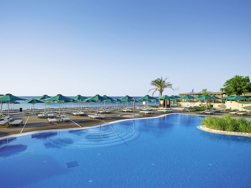 Am Wasser warten Aussenpool und Lazy‑River‑Pool, Liegen, Sonnenschirme und Badetücher sind am Pool und am Strand bereitgestellt. Praktisch: Mietwagenservice von Esperides Car Rental sowie Motorroller‑Verleih im Resort, dazu Ladestationen für Elektrofahrzeuge und bewirtschaftete Parkplätze. Web Check‑in und Weckdienst schaffen reibungslose Abläufe.