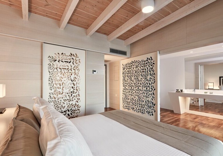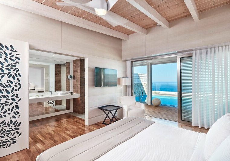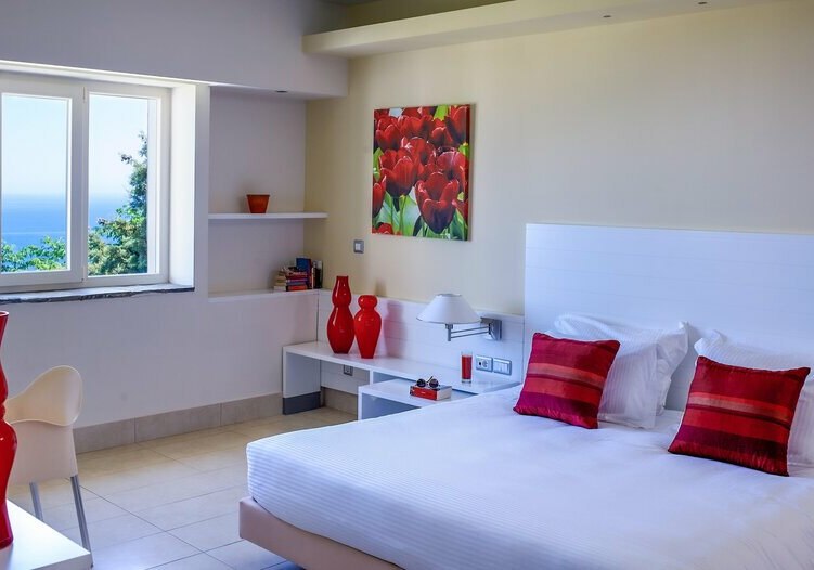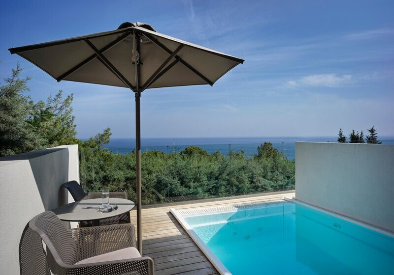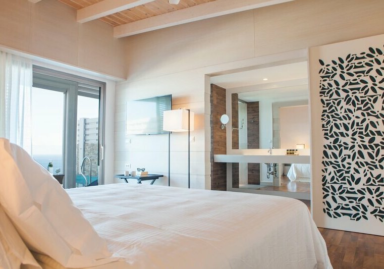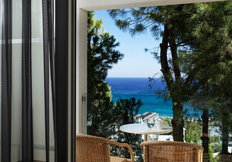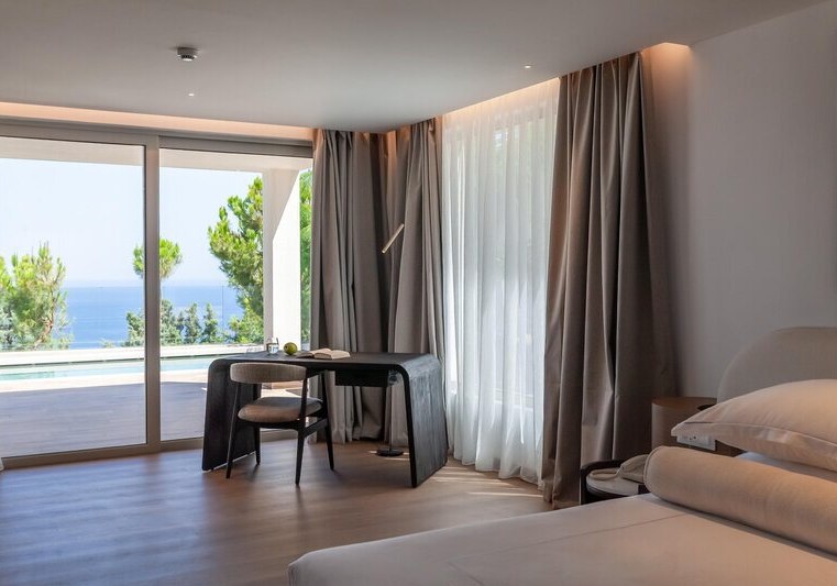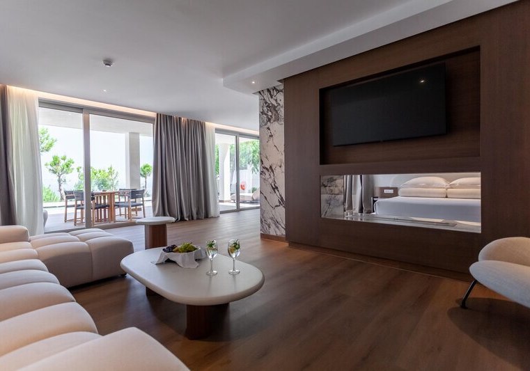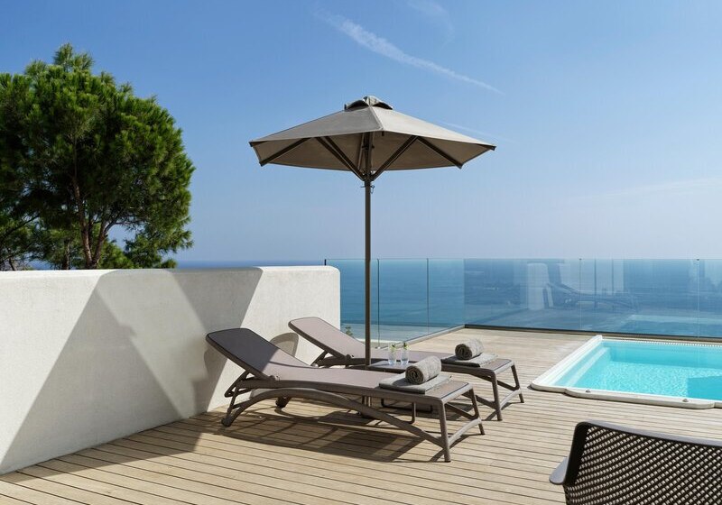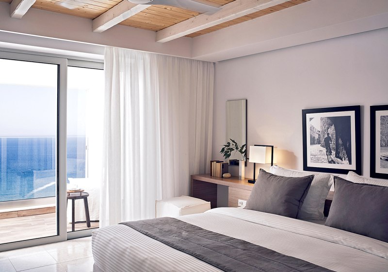 Die Zimmer sind funktional durchdacht und auf Ruhe ausgerichtet: zentrale, individuell regulierbare Klimaanlage, WLAN, Smart-/Sat-TV, Safe, Minikühlschrank und Kaffee-/Teezubereiter gehören zum Standard. Bad mit Dusche/WC, Föhn, Bademänteln und Slippern, teils ergänzt um Badewanne oder Bidet, runden den Komfort ab. Balkon oder Terrasse öffnet den Blick – je nach Lage auch zum Meer. Highlight: Viele Zimmer mit Aussenbereich und optionaler Meersicht.