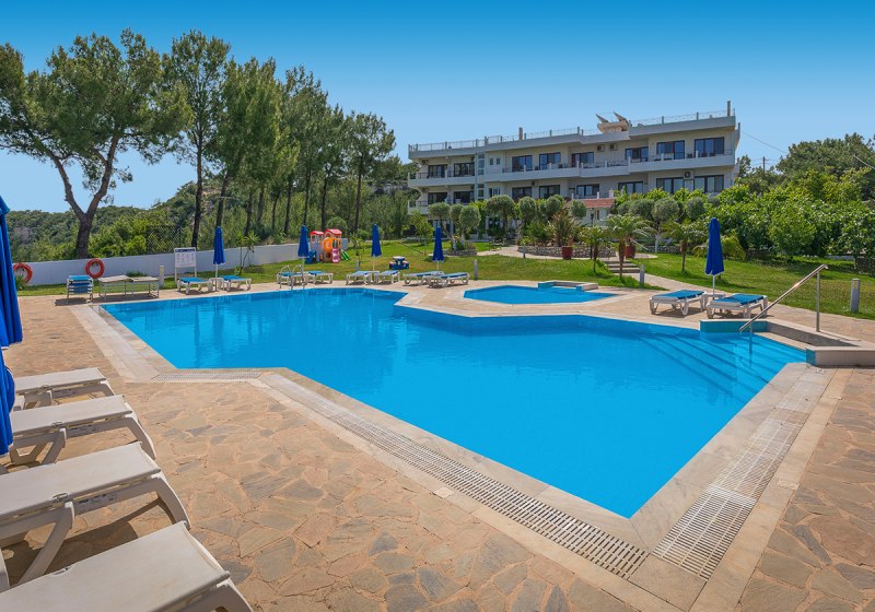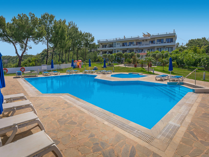 Die Strände von Ialysos, Trianta und Faliraki erreicht Ihr in wenigen Kilometern, der Flughafen liegt rund 16 km entfernt. Wer flexible Verpflegung, kurze Wege und unaufgeregte Abende schätzt, ist hier bestens aufgehoben.