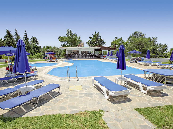 Ihr startet den Tag im Frühstücksraum und lasst ihn auf der Sonnenterrasse ausklingen. WLAN in der Lobby sowie eine kostenlose Internetecke halten Euch verbunden, während Parkplätze am Haus pragmatische Anreise erleichtern. Eine À-la-carte-Taverna, Poolbar und Snackbar versorgen Euch tagsüber. Haustiere sind nicht erlaubt, Kreditkarten Visa und Mastercard werden akzeptiert.