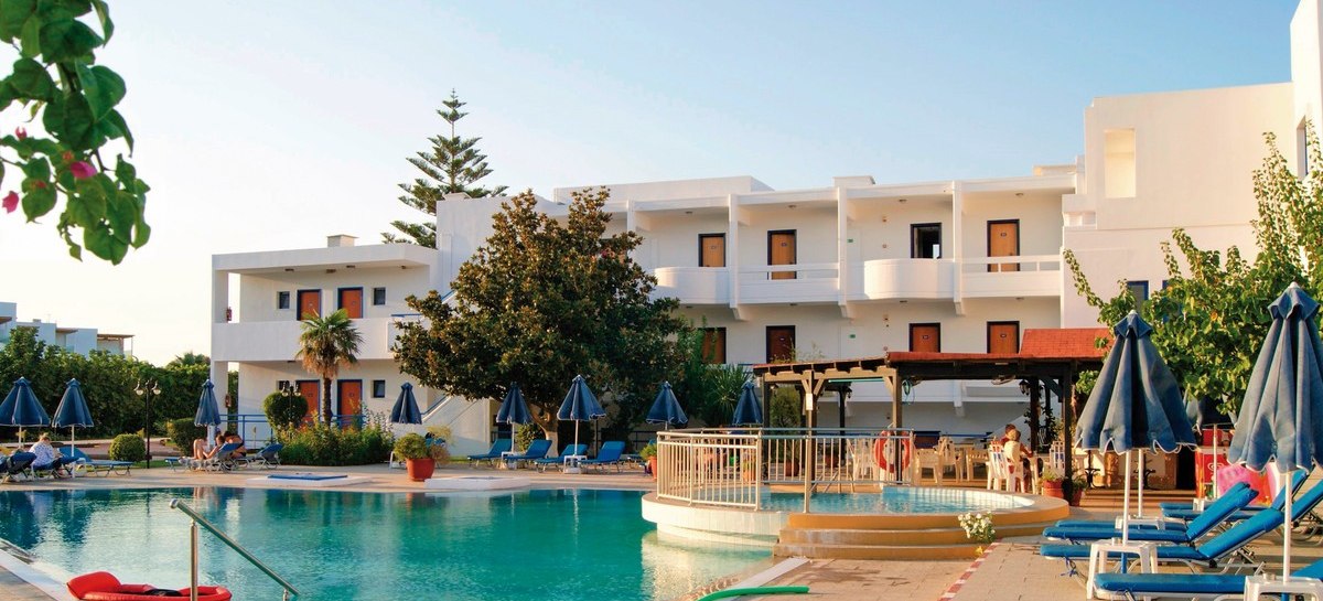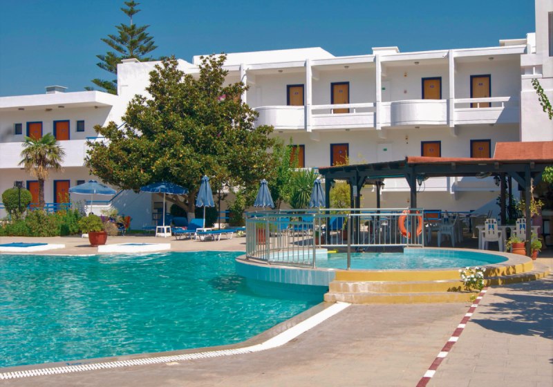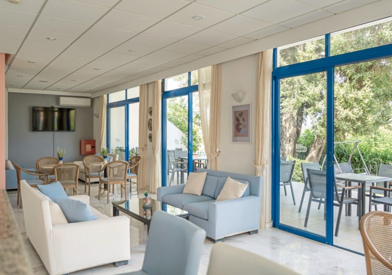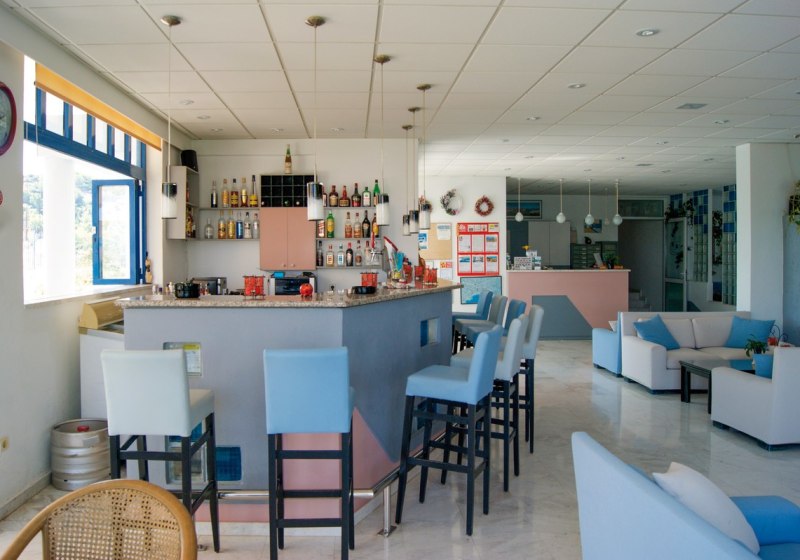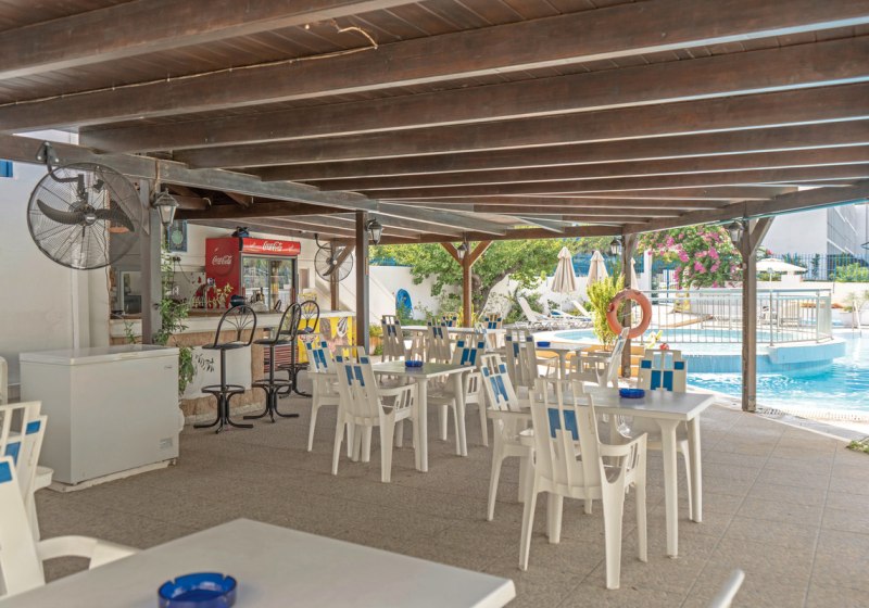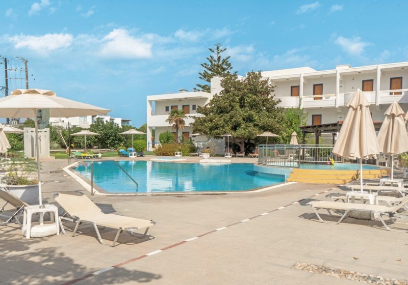 Im Außenbereich erwartet Euch der Süßwasserpool mit separatem Kinderbecken, eingerahmt von Liegestühlen und Sonnenschirmen. Die Poolbar und die Snackbar schließen den Kreis kurzer Wege. Mit 44 Wohneinheiten bleibt das Haus übersichtlich, die Ansprache persönlich. Praktisch: Die Hotelsprache umfasst Deutsch, Griechisch und Englisch – Ihr klärt Anliegen direkt und ohne Umwege.