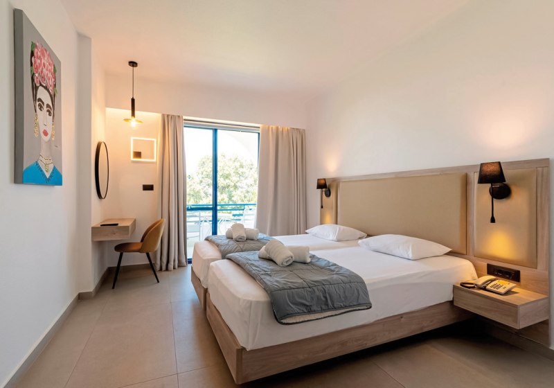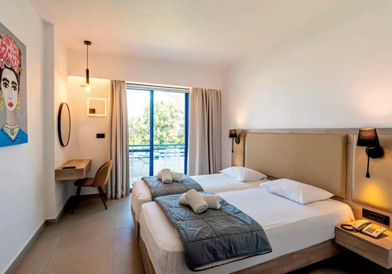Mit Minigolf, Tennis und ausgewiesenem Wassersport bleibt Ihr in Bewegung, ohne Programmzwang. Zimmer und Infrastruktur sind funktional aufgestellt, viele Extras flexibel zubuchbar. So richtet Ihr im Urlaub Eure Schwerpunkte nach Sonne, Strand und einfachen Abläufen – kompakt, zugänglich und gut eingebunden in Faliraki.