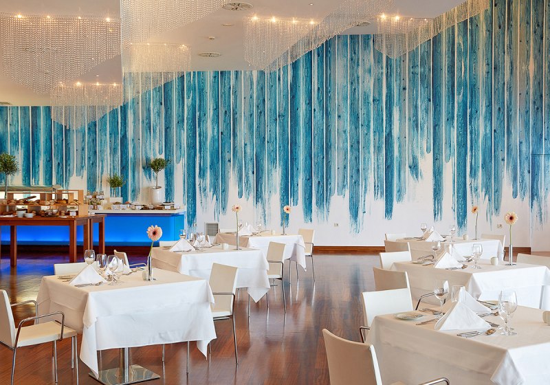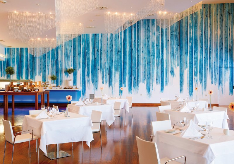 Zwei Restaurants setzen den kulinarischen Rahmen, flankiert von einer Poolbar für den unkomplizierten Wechsel zwischen Schwimmen und Snack. Angeboten werden Frühstück und Abendessen im Rahmen der Halbpension, ergänzt durch Live-Kochen und spezielle Optionen wie vegetarische, glutenfreie und Diätgerichte sowie Snacks.