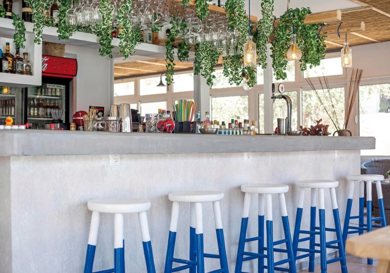 Die Atmosphäre ist angenehm unaufgeregt: tagsüber Badeliege, abends Barhocker – dazwischen kurze Wege zum Frühstück, zur Snackbar oder an die Hotelbar. Wer mobil sein möchte, nutzt Mietwagen- oder Fahrradleihservice, der hoteleigene Shuttle und Transfers bringen Struktur in euren Urlaub. Englisch und Griechisch sitzen an der Rezeption, Kreditkarten sind willkommen, Euer Safe bleibt kostenfrei.