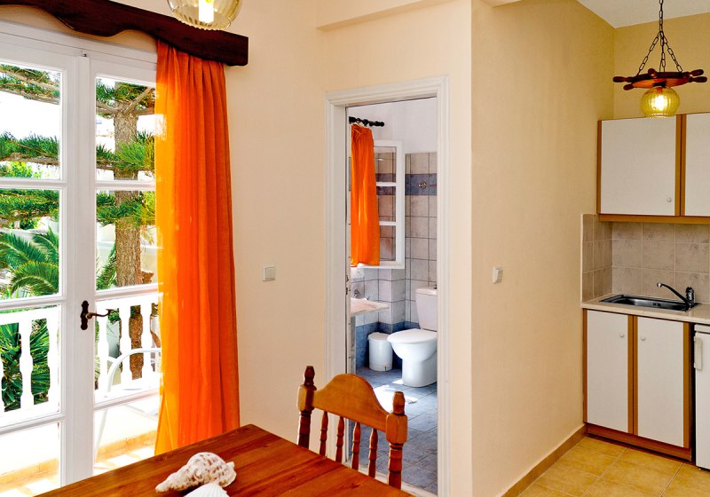 Wenn Ihr lieber unabhängig bleibt, nutzt Ihr die Kitchenette im Apartment und kombiniert Selbstversorgung mit Restaurantbesuchen. So lässt sich der kulinarische Tag flexibel planen: schnell an der Snackbar, entspannt im Restaurant oder spontan entlang der nahen Promenade in Kamari.
