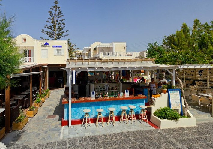 Dolphins Apartments liegt in Kamari direkt am schwarzsandigen Lavastrand und richtet sich an Strandurlauber, die kurze Wege und klare Strukturen schätzen. Mit 3 Sternen (Landeskategorie) und insgesamt 20 Apartments wirkt das Haus angenehm überschaubar. Ihr wohnt nah am Zentrum, nutzt WLAN und bewegt Euch zwischen Strandpromenade, Terrasse und Garten ohne Hektik.