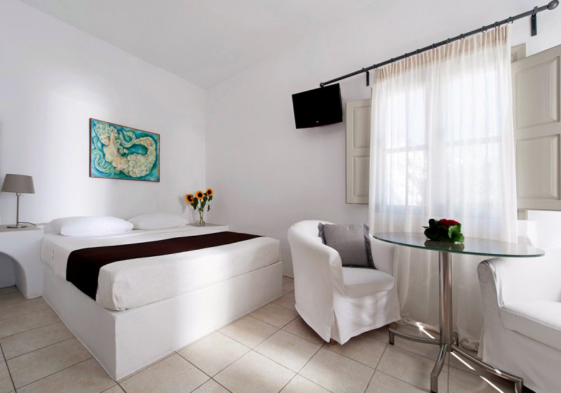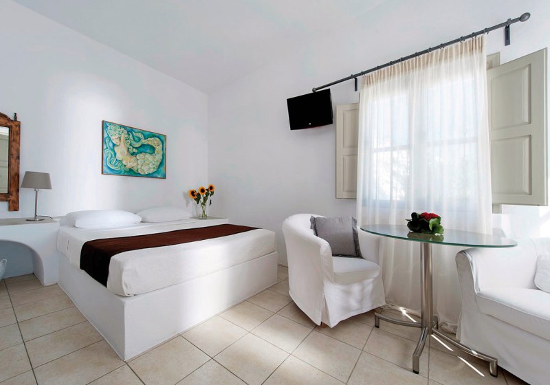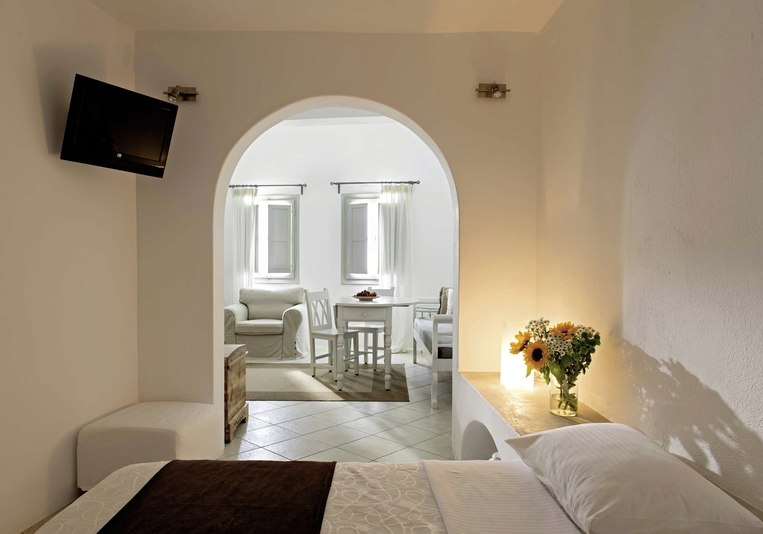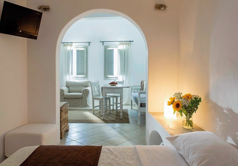Wer den Strand einplanen möchte, berücksichtigt die Distanz von rund 8 Kilometern; so verlegt Ihr Sonnen- und Badezeiten auf gezielte Ausflüge. Für Tage mit leichtem Programm empfehlen sich Fahrradausfahrten und Spaziergänge ab Imerovigli. Damit passt das Angebot zu einem ruhigen, selbstgestalteten Aufenthalt mit Aktivakzenten nach Wunsch. Highlight: Fahrrad/Mountainbike laut Hotelfakten für flexible Erkundungen.