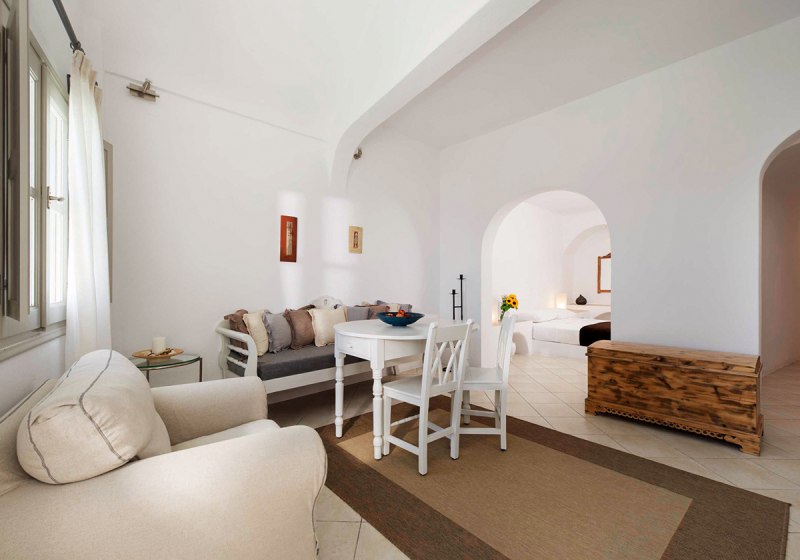Für erholsame Pausen bietet das Haus laut Hotelfakten ein kleines Spa-Angebot mit Sauna, Whirlpool und buchbaren Massagen. Es ergänzt den Pool- und Terrassenbereich und schafft entspannte Momente nach Ausflügen oder einem Bummel durch Imerovigli. Ein ausgewiesenes, umfangreiches Spa-Programm wird nicht genannt; der Charakter bleibt bewusst kompakt.