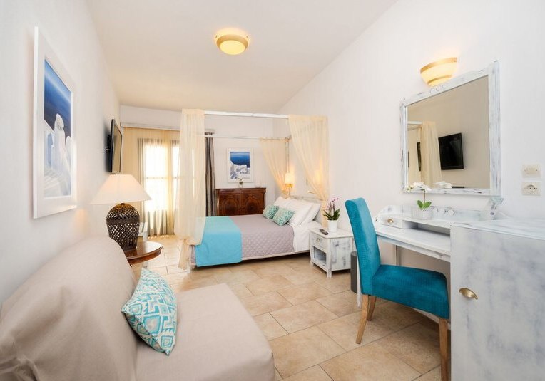 Das Hotel Mathios Village verbindet ruhige Lage in Akrotiri, kurze Wege zum Kiesstrand und eine kompakte Infrastruktur mit Außenpool, Terrassen und mehreren kulinarischen Anlaufpunkten. Zimmer mit Balkon oder Terrasse, optionalem Garten- oder Meerblick sowie verlässlichen Basics schaffen eine klare, angenehme Basis für Euren Urlaub.