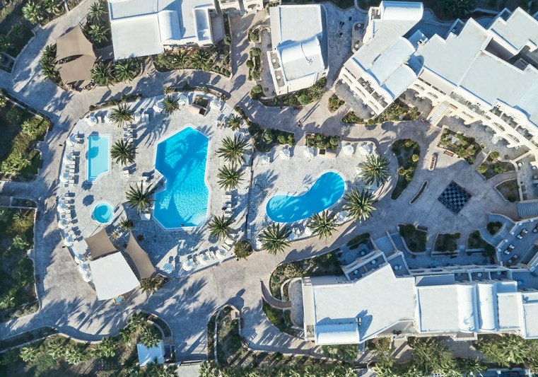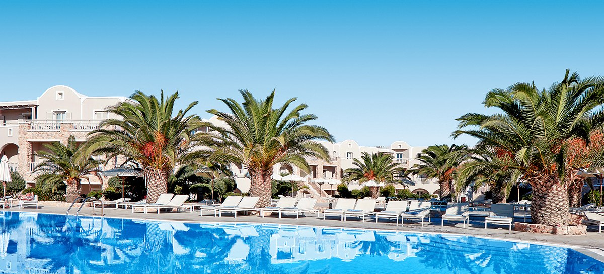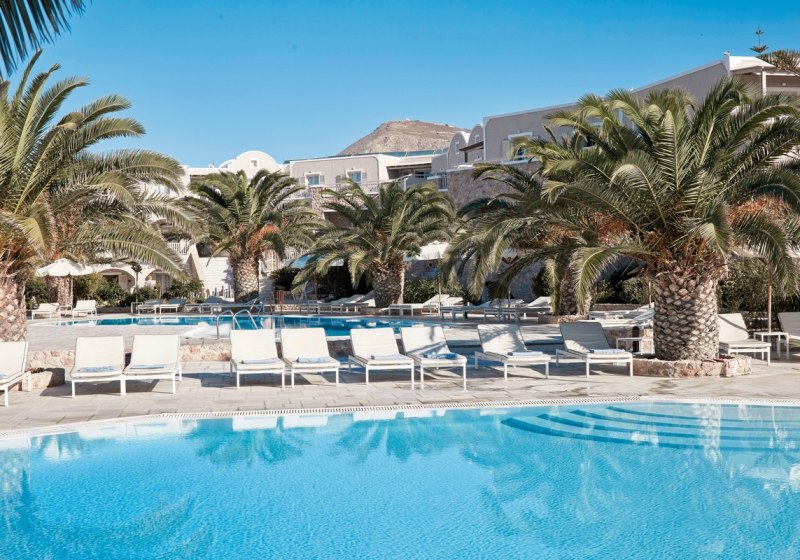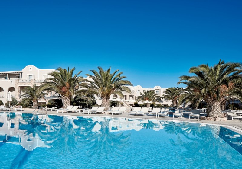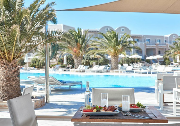 Abends trefft Ihr Euch gern an der Poolbar. Der Rahmen bleibt angenehm gelassen, Gespräche klingen nach, während die Wege kurz bleiben. Wer Abwechslung sucht, nutzt die unkomplizierte Verbindung zum Strand oder plant Ausflüge nach Fira. Highlight: Kinderprogramm sorgt tagsüber für Struktur, Eltern behalten freie Zeitfenster.