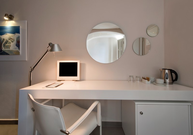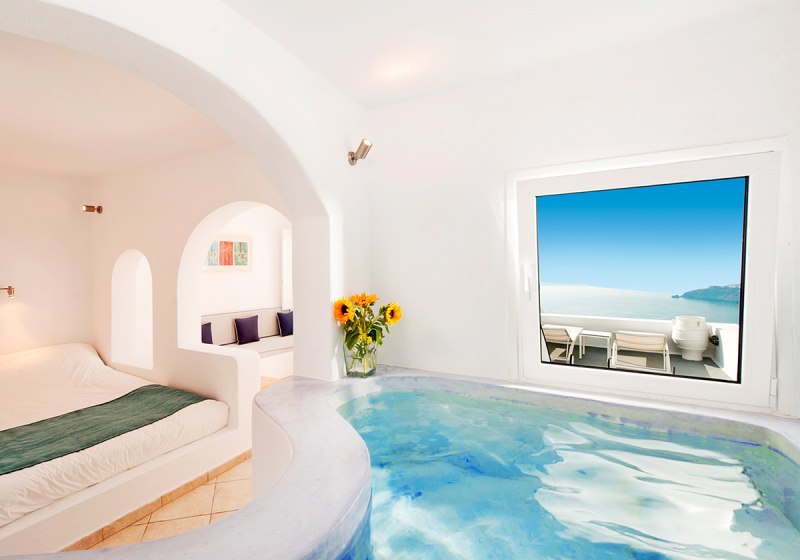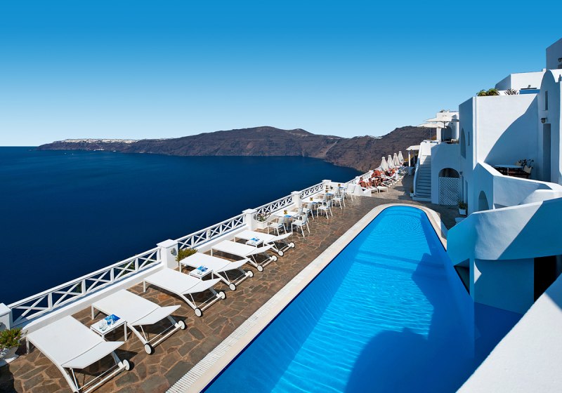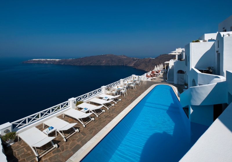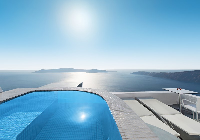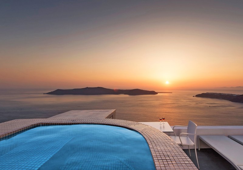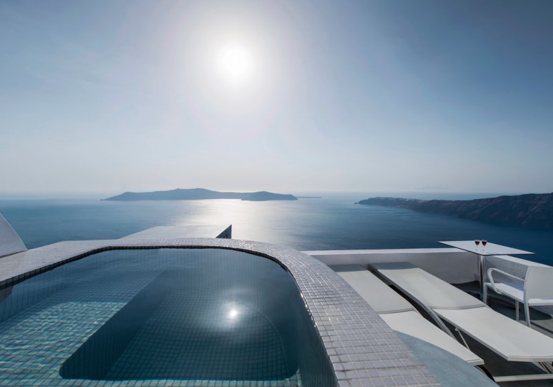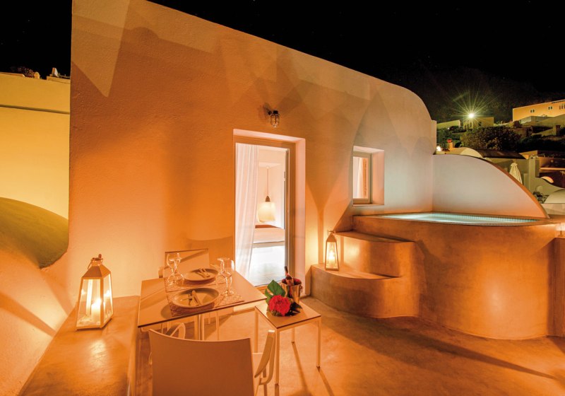 Die Lage auf der Klippe in Imerovigli, das kleine Format mit 19 Zimmern und der Zugang zum 160-Quadratmeter-Spa im Avaton-Schwesternhotel machen das Haus stimmig für ruhige Tage im Urlaub mit gutem Rhythmus zwischen Aktivsein und Auszeit.