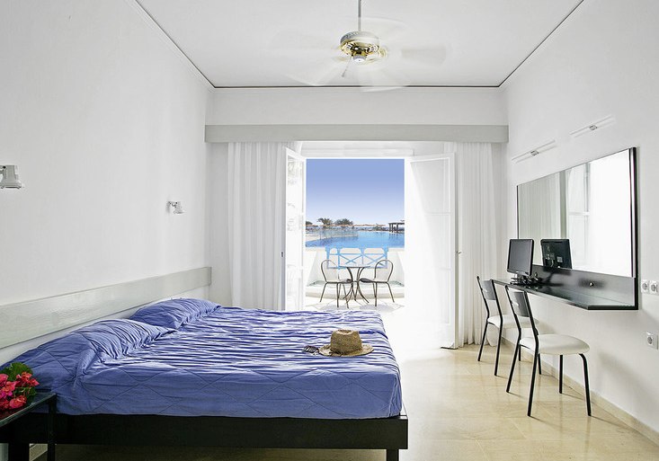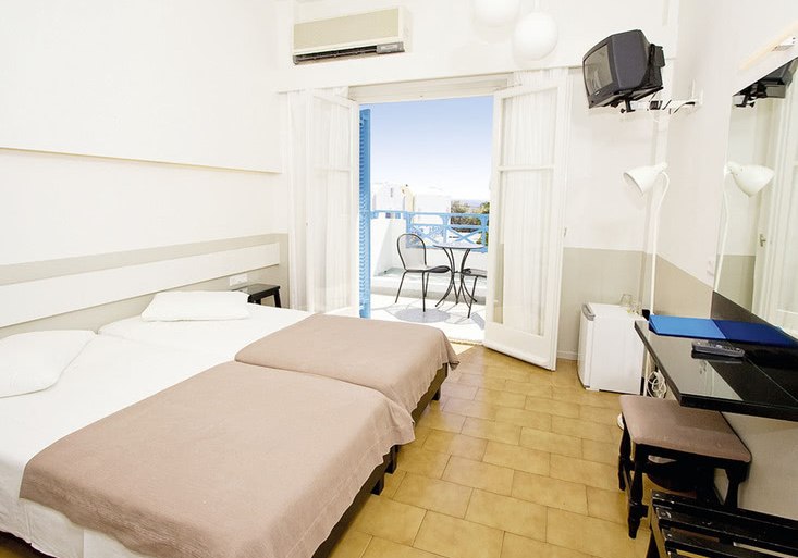 Die rund 100 Nichtraucherzimmer sind zweckmäßig ausgestattet: Klimaanlage, TV, WLAN, Telefon und Mietsafe sorgen für Komfort. Minikühlschrank, Balkon oder Terrasse sowie Bad mit Dusche oder Badewanne und Föhn gehören zum Standard. Fliesenboden und klare Linien unterstützen das luftige Mittelmeer-Gefühl.