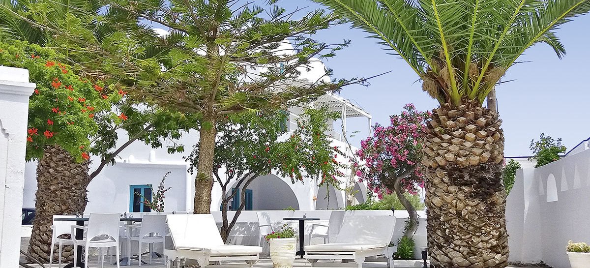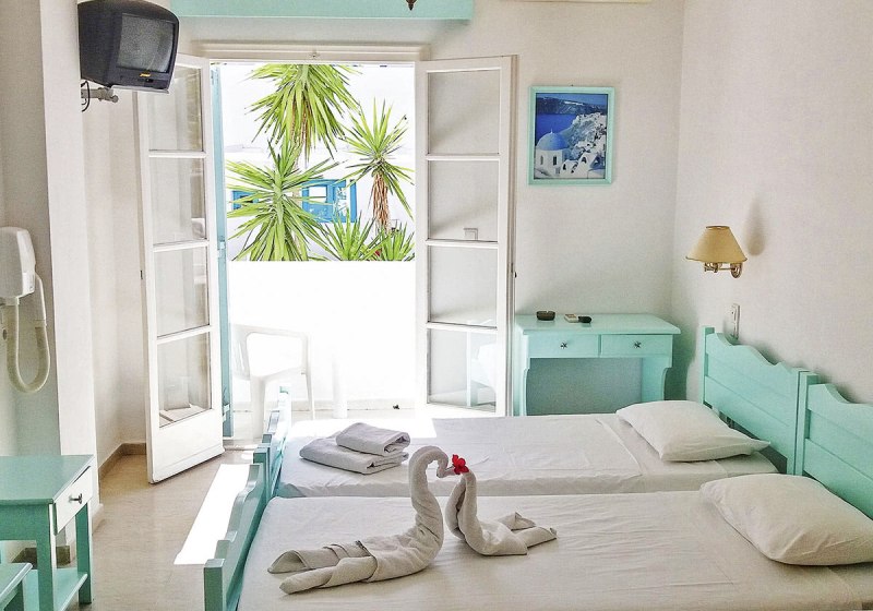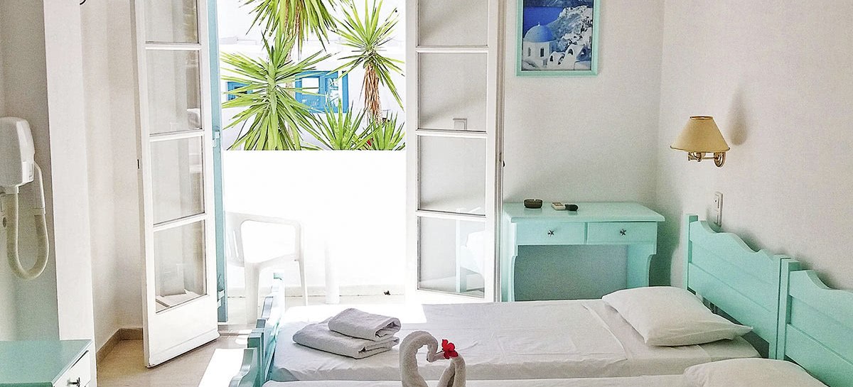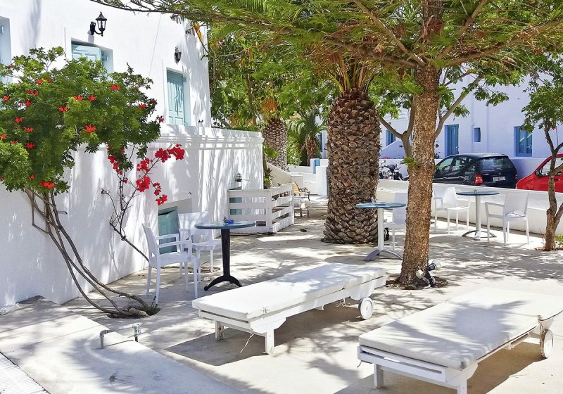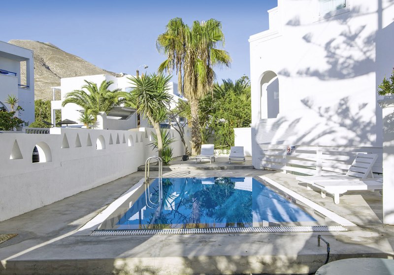 Im Kymata Hotel wohnt Ihr in einem kleinen Haus mit 19 Zimmern, wenige Schritte vom schwarzen Lavastrand entfernt. Das Ambiente ist unkompliziert, die Wege sind kurz: Außenpool, Sonnenterrasse sowie Liegen und Schirme schaffen einen entspannten Rahmen. WLAN steht in den öffentlichen Bereichen bereit, Wertsachen verwahrt Ihr im Safe.