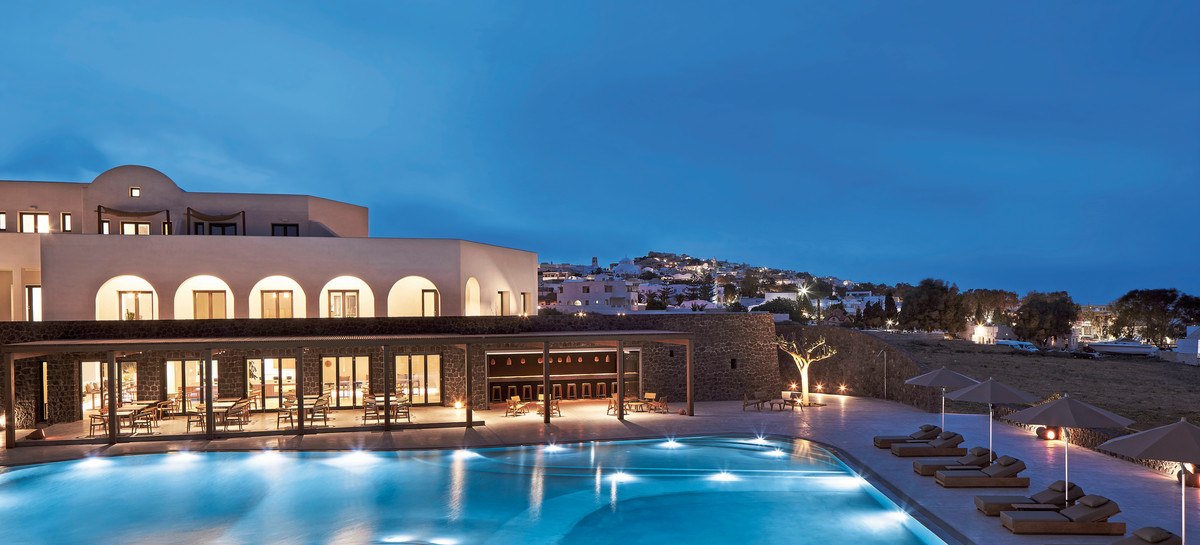Orama Hotel & Spa in Fira kombiniert zentrale Lage, klare 5‑Sterne‑Struktur und eine Küche mit griechisch‑mediterranem Fokus. Drei Pools inklusive Kinderbereich, WLAN in der gesamten Anlage, flexible Services und ein ruhiges Wellness‑Center schaffen verlässliche Ankerpunkte für Euren Tag.