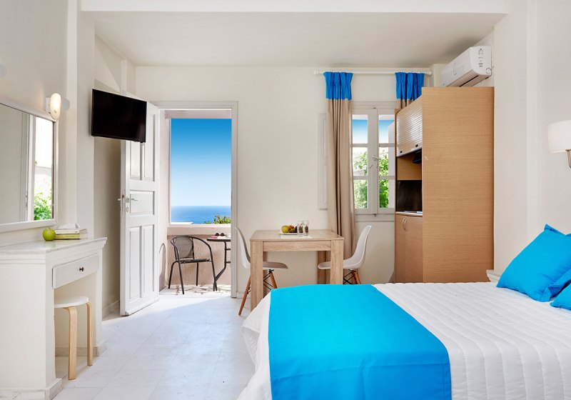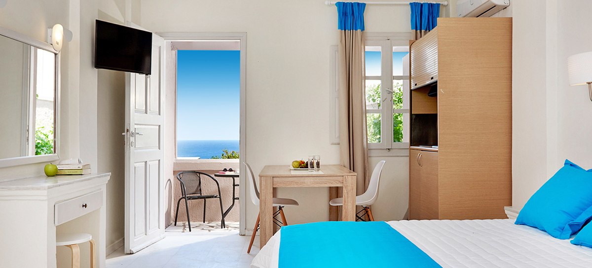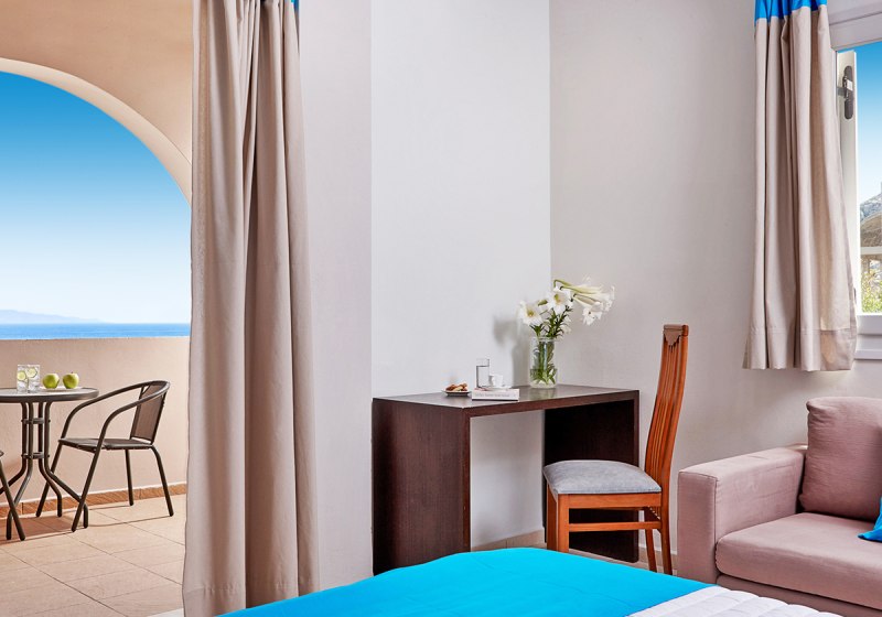 Die Zimmer im Terra Blue Hotel sind praxisnah ausgestattet: Klimaanlage, WLAN, Safe, TV und Telefon gehören ebenso dazu wie Minikühlschrank sowie Bad oder Dusche mit WC und Föhn. Ein Balkon oder eine Terrasse schafft zusätzliche Luft und Raum, um den Tag entspannt ausklingen zu lassen.