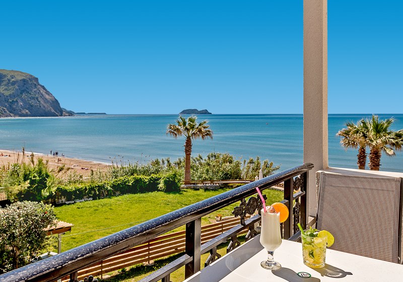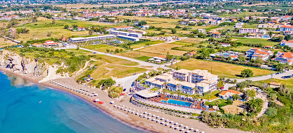 Der Standort wirkt wie gemacht für spontane Strandtage: direkt am Sandstrand von Kalamaki, 100 Meter zu Supermarkt sowie Bars und Restaurants. Zum touristischen Zentrum sind es 300 Meter, nach Laganas 3 Kilometer, in die Stadt Zakynthos 5 Kilometer. Der Flughafen (ZTH) liegt rund 3 Kilometer entfernt.