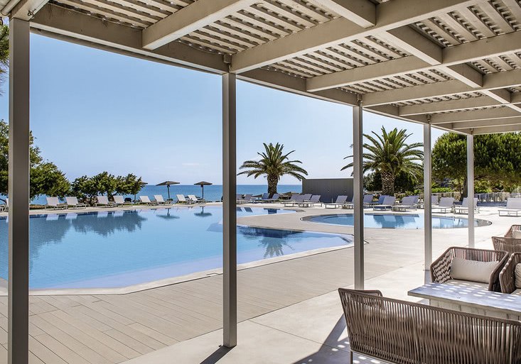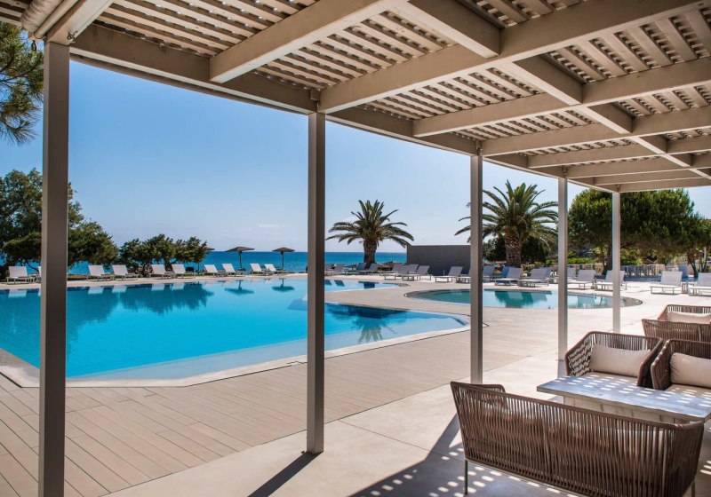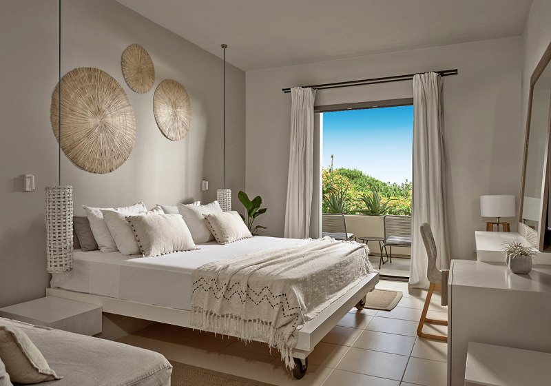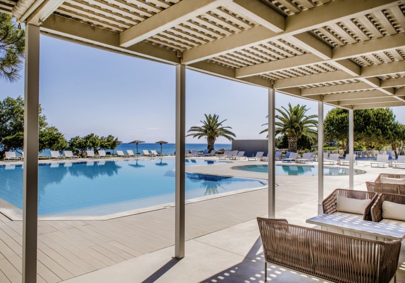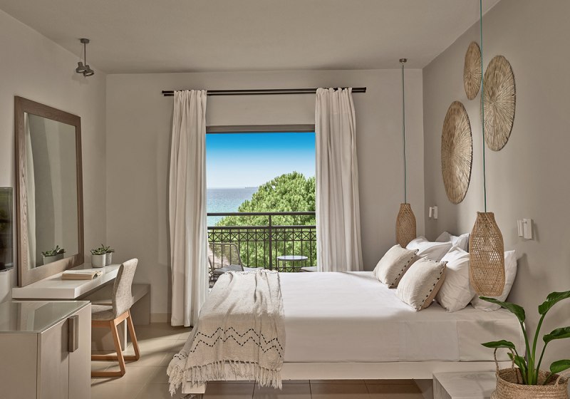 Für mehr Raum wählt Ihr Juniorsuiten mit offenem Wohnbereich und zusätzlichem DVD-Player; buchbare Meerblick-Optionen setzen klare Akzente. Familienzimmer und Zustellbettlösungen sind vorgesehen. Wer gerne draußen sitzt, findet auf Balkon oder Terrasse Platz für den Ausklang nach Strand und Pool. Das Design wirkt funktional und klar, mit Fokus auf sinnvolle Ausstattung statt Dekor.