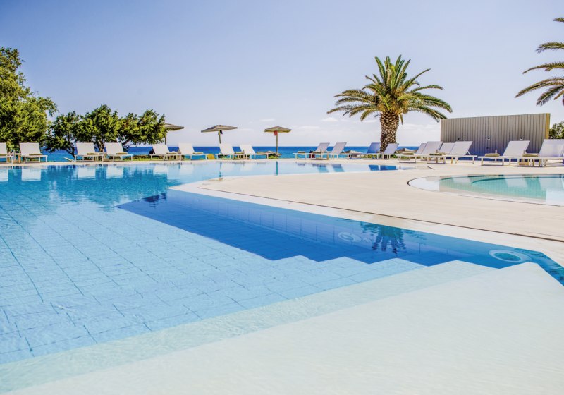 The Bay Hotel + Suites verbindet ruhige Strandlage, klare Familienleistungen und ausgewogene Gastronomie. Der hoteleigene Sandstrand liegt nur 100 Meter entfernt, Liegen und Schirme sind inklusive. Mit Miniclub, Kinderpool, Tennis und nahegelegenem Wassersport gestaltet Ihr Euren Tag frei zwischen Aktivität und Entspannung.