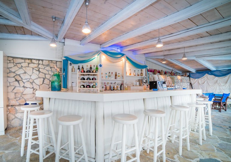 Die Bar ergänzt Euren Abend, wenn Ihr die Live-Musik genießen möchtet oder nach dem Spaziergang durch Agios Sostis zurückkehrt. Die Strandbar begleitet den Tag mit Blick auf Wasser und Wellen, ohne Wege, ohne Umwege. So bleibt Euer kulinarischer Ablauf geradlinig – vom ersten Kaffee bis zum letzten Glas am Meer.