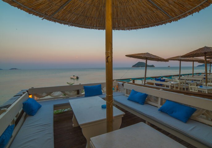 Ihr residiert in Porto Koukla direkt am Sandstrand – ein Schritt durch den Garten, und Ihr steht im warmen Sand. Bis ins Ortszentrum von Agios Sostis sind es ca. 1,5 km, nach Laganas etwa 3 km. Der Flughafen liegt rund 10 km entfernt, wodurch An- und Abreise überschaubar bleiben. Die hoteleigene Beachbar verbindet Lage und Genuss am Wasser auf angenehm kurze Weise.