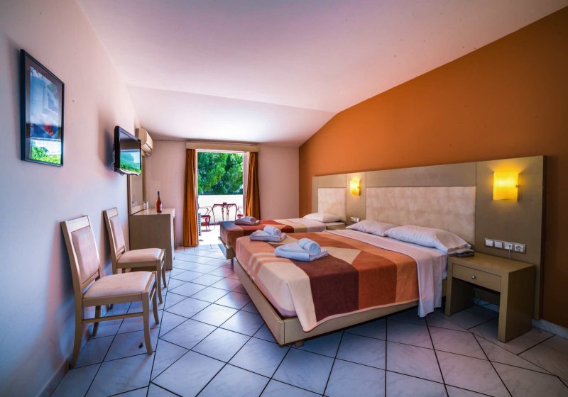 Mit Restaurant, Bar, Poolbar und Strandbar bleibt Ihr kulinarisch flexibel, ob Ihr früh startet oder den Abend am Meer ausklingen lasst. WLAN ist inklusive, Liegen und Schirme stehen am Pool und am Strand bereit. Familien finden praktische Familienzimmer mit Etagenbett, Paare bevorzugen Doppel- und Comfortzimmer mit Balkon. Wer Porto Koukla authentisch erleben will, nutzt die Nähe zu Agios Sostis und Laganas – ihr erreicht beides in wenigen Minuten. So fühlt sich Euer Strandtag im Urlaub geradlinig und stimmig an.
