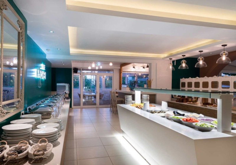 Der Aufenthalt fühlt sich klar und unkompliziert an: kurze Wege, eine kompakte Lobby mit Rezeption und Sat-TV-Ecke, dazu Bar und Restaurant mit Buffet zum Frühstück und Abendessen. Das Setting passt, wenn Ihr konzentrierte Auszeit mögt und die Strandnähe schätzt. Highlight: Adults only ab 16 Jahren mit ruhigem Garten-Pool als Mittelpunkt.
