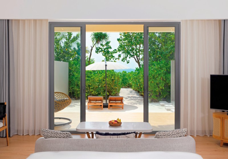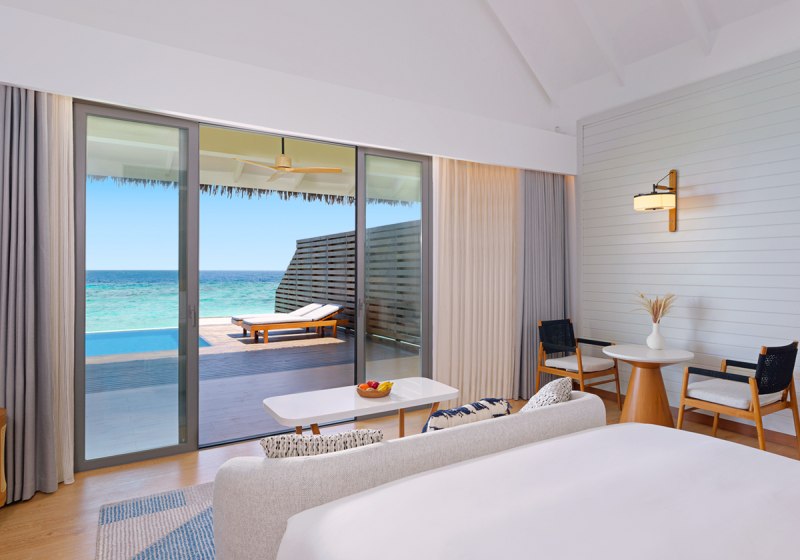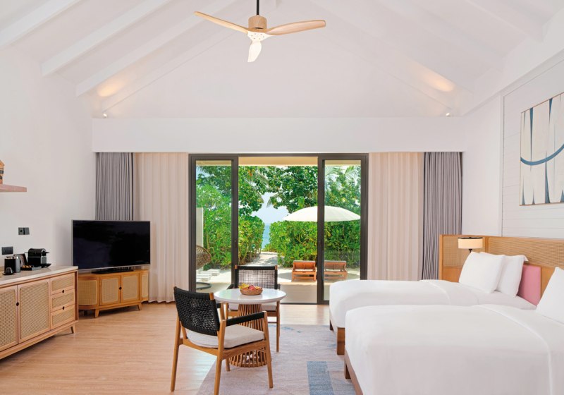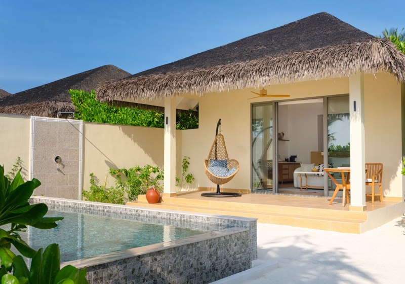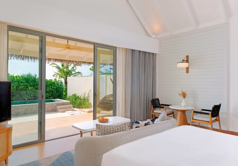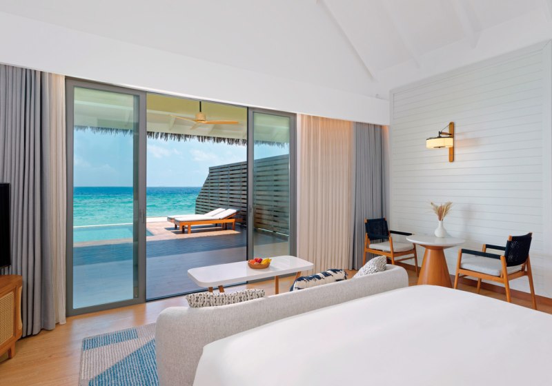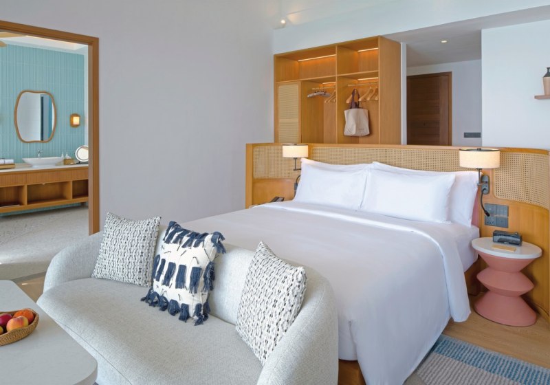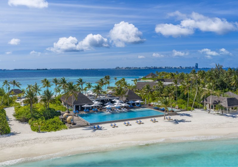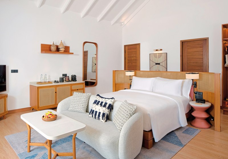 Die Villa-Welt prägt das Gefühl von Rückzug: private Terrassen, teils eigener Pool, direkter Strand- oder Meereszugang. Kulinarisch wechselt Ihr zwischen mediterranen Akzenten, Bangkok Street Food, maledivischen Spezialitäten und einem Überwasser-Restaurant. Das Beachclub-Erlebnis mit Rooftop-Bar verlagert den Abend nach oben – mit Aussicht und lässigem Tempo.