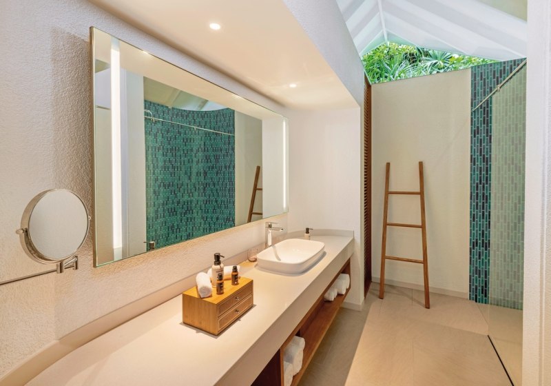 - Villenwahl: Strand- oder Überwasservillen, teils mit Privatpool.