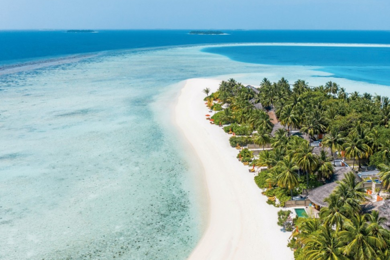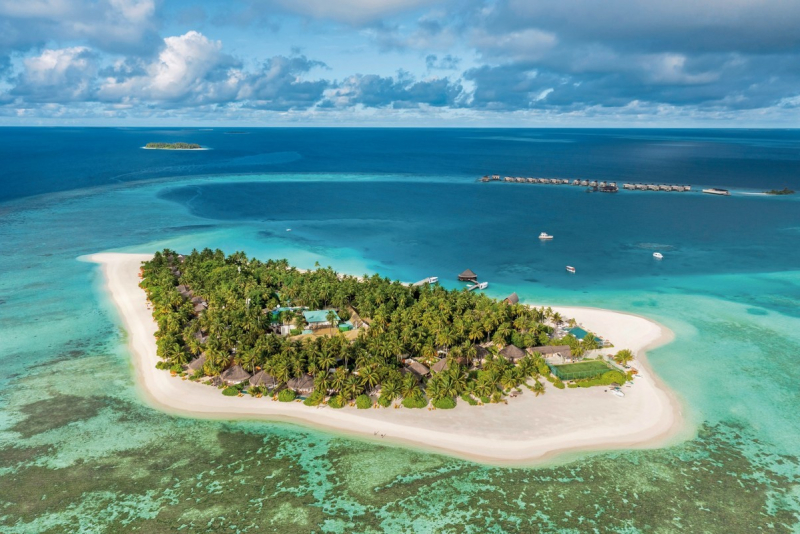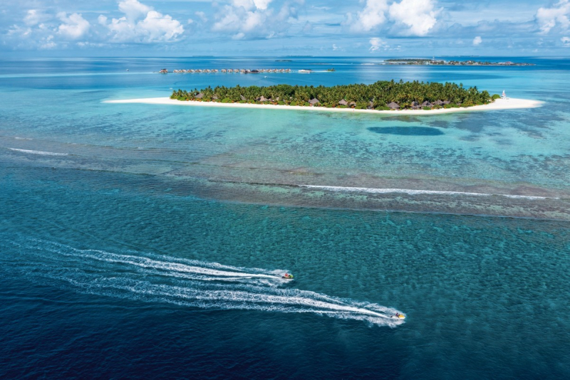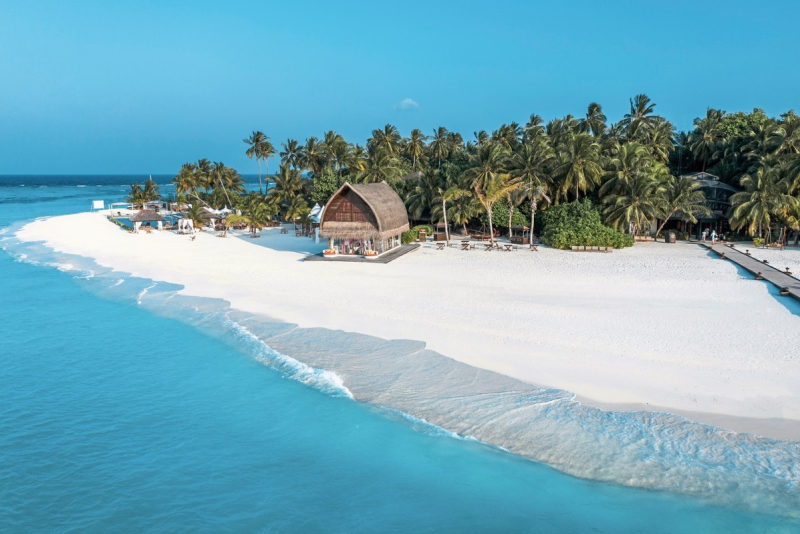 Das Hotel liegt direkt am Strand, auf einer malerischen Insel namens Velavaru, die etwa 500x200m groß ist. Hier finden Sie Sandstrände in nächster Nähe zum Hausriff. Die Anreise erfolgt bequem per Wasserflugzeug, die Transferluft dauert etwa 45 Minuten.