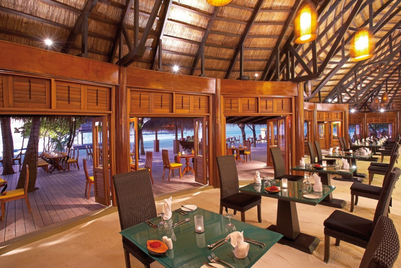 Das Angsana Velavaru bietet insgesamt sechs Restaurants (darunter 'Kaani' mit asiatisch-internationaler Küche, 'Azzurro' mit mediterraner Küche und 'Funa' mit asiatischer Küche), einen Teeservice am Nachmittag und zwei Bars. Neben all dem können Sie zwischen All-inclusive und All-inclusive-Ultra wählen, die beide einen großzügigen Service bieten.Ausstattung